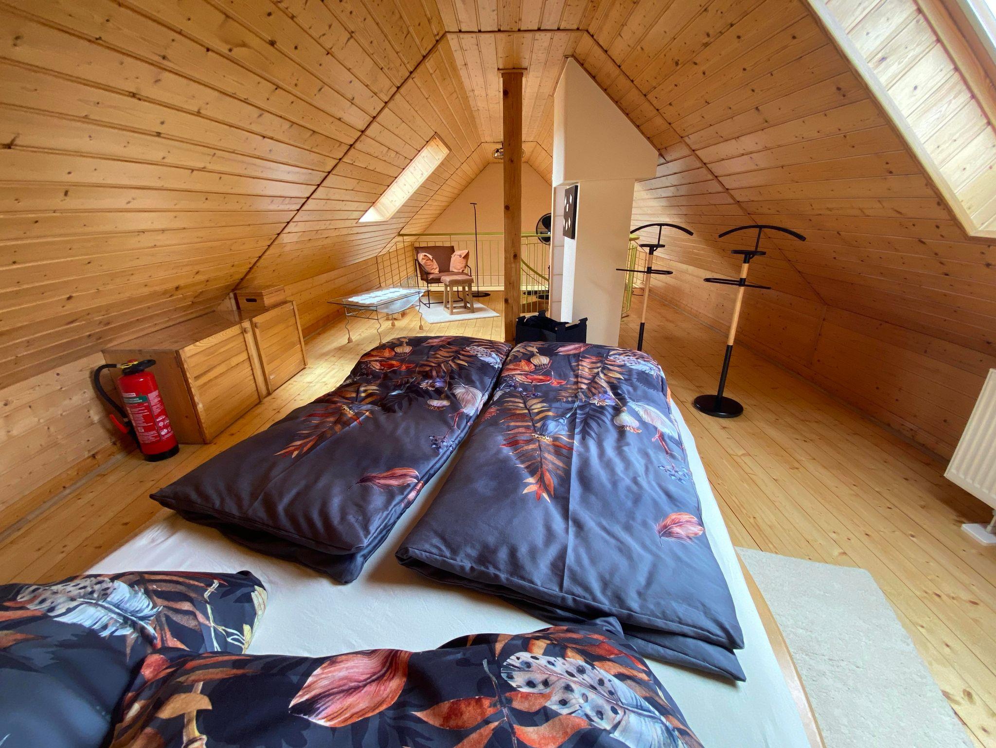 Mit einer eindrucksvollen Aussicht in den nächtlichen Sternenhimmel hat auch dieser Bereich seinen eigenen Charme. Das Bett hat dort eine Größe von 1,40 x 2,00 Meter und kann von 1-2 Personen genutzt werden.