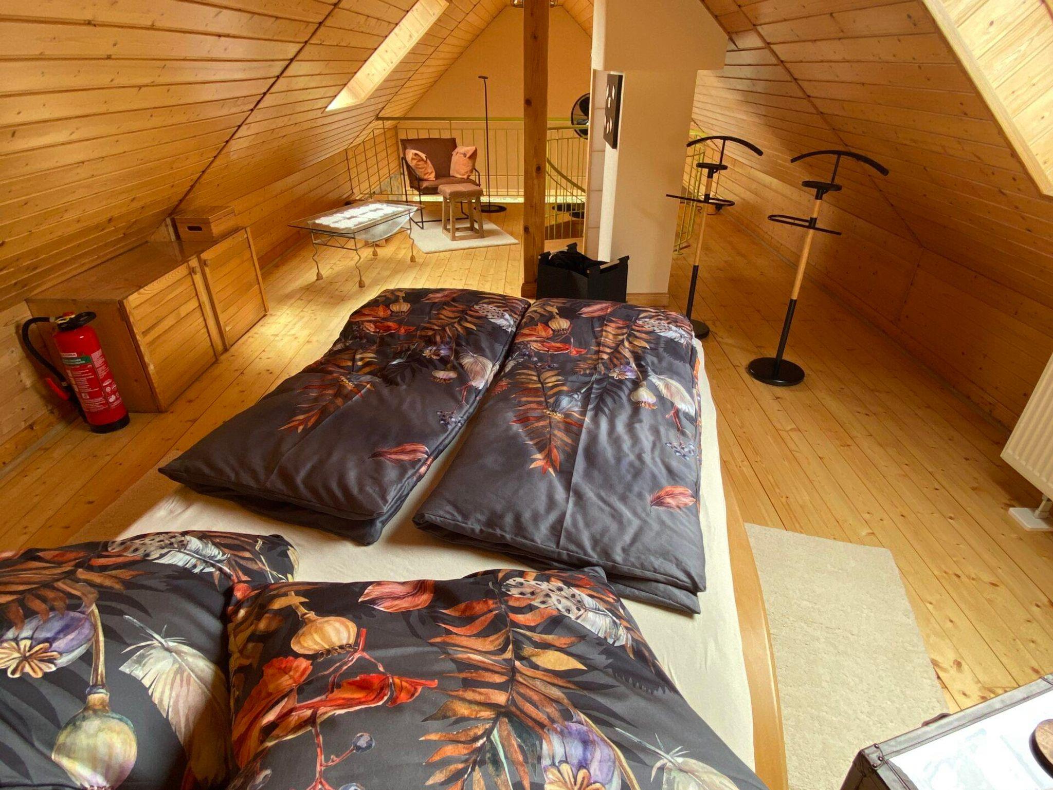 Mittels einer Wendeltreppe im Wohnzimmer, gelangen Sie in einen Wohn/ Schlafbereich auf der Empore.