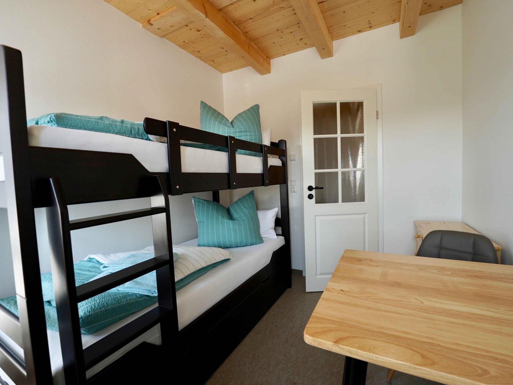 Diese Familienwohnung mit Blick auf den Berg Kottmar besitzt eine geräumige vollausgestattete Wohnküche mit einer Essecke, 2 Schlafzimmer mit jeweils 1 Doppelbett und 1 Etagenbett. Im Badezimmer erwartet euch eine große ebenerdige Dusche sowie ein WC, Waschtischschrank und einen großen beleuchteten Spiegel. Der Wohnbereich ist großzügig bemessen und die Besonderheit dieser Ferienwohnung ist eine zum Dach hin offene Bauweise mit einer aufwendigen Holzkonstruktion. Weiterhin besteht die Möglichkeit, bei Bedarf eine weitere Ferienwohnung mit 5 Betten mitzubenutzen. In der Ferienwohnung sind außerdem der Bettwäsche- und Handtuchservice sowie der Kaffee und eine kleine Tee-Auswahl in der Küche, als Service inbegriffen. Eine Flasche Mineralwasser als Begrüßungsgetränk und die Endreinigung nach dem Check Out gehören ebenfalls standardmäßig zu unserem Service.