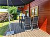 Zu jedem Haus gehört eine Terrasse mit Möbeln, Sonnenschirm und Grill sowie ein kostenfreier Parkplatz direkt am Gartenzaun.