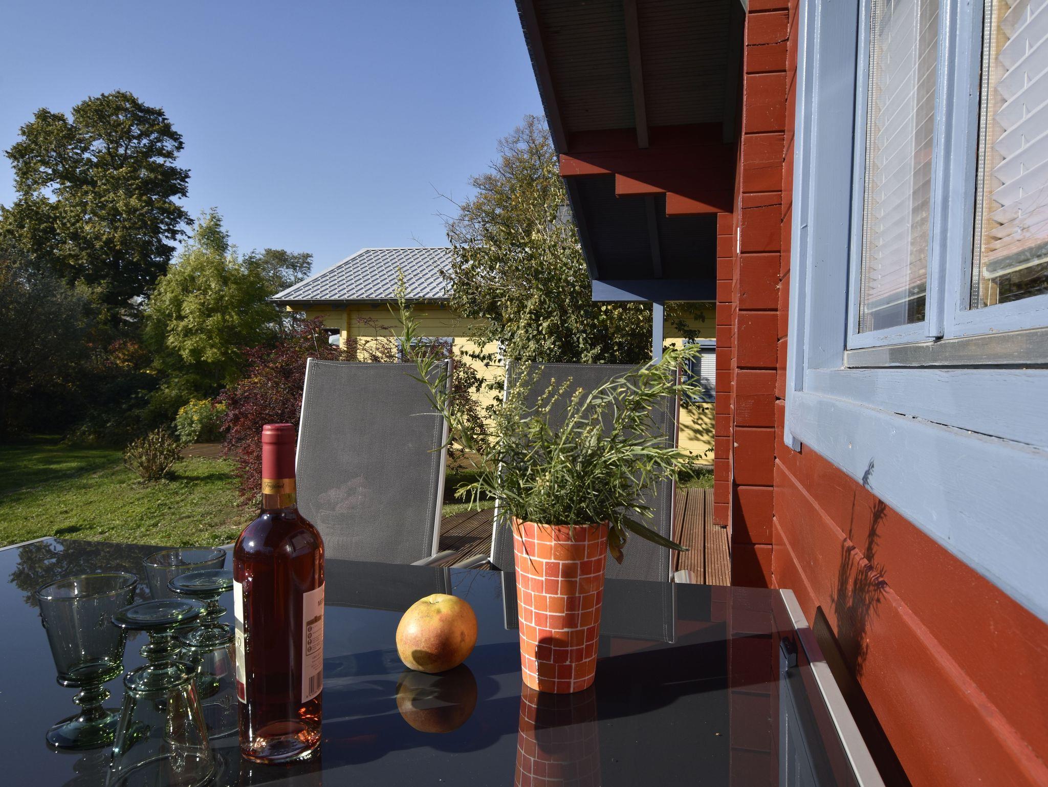 Gemütliches Holzferienhaus mit Kamin, Terrasse und Podsauna in Kröpelin-Brusow an der Ostseeküste.