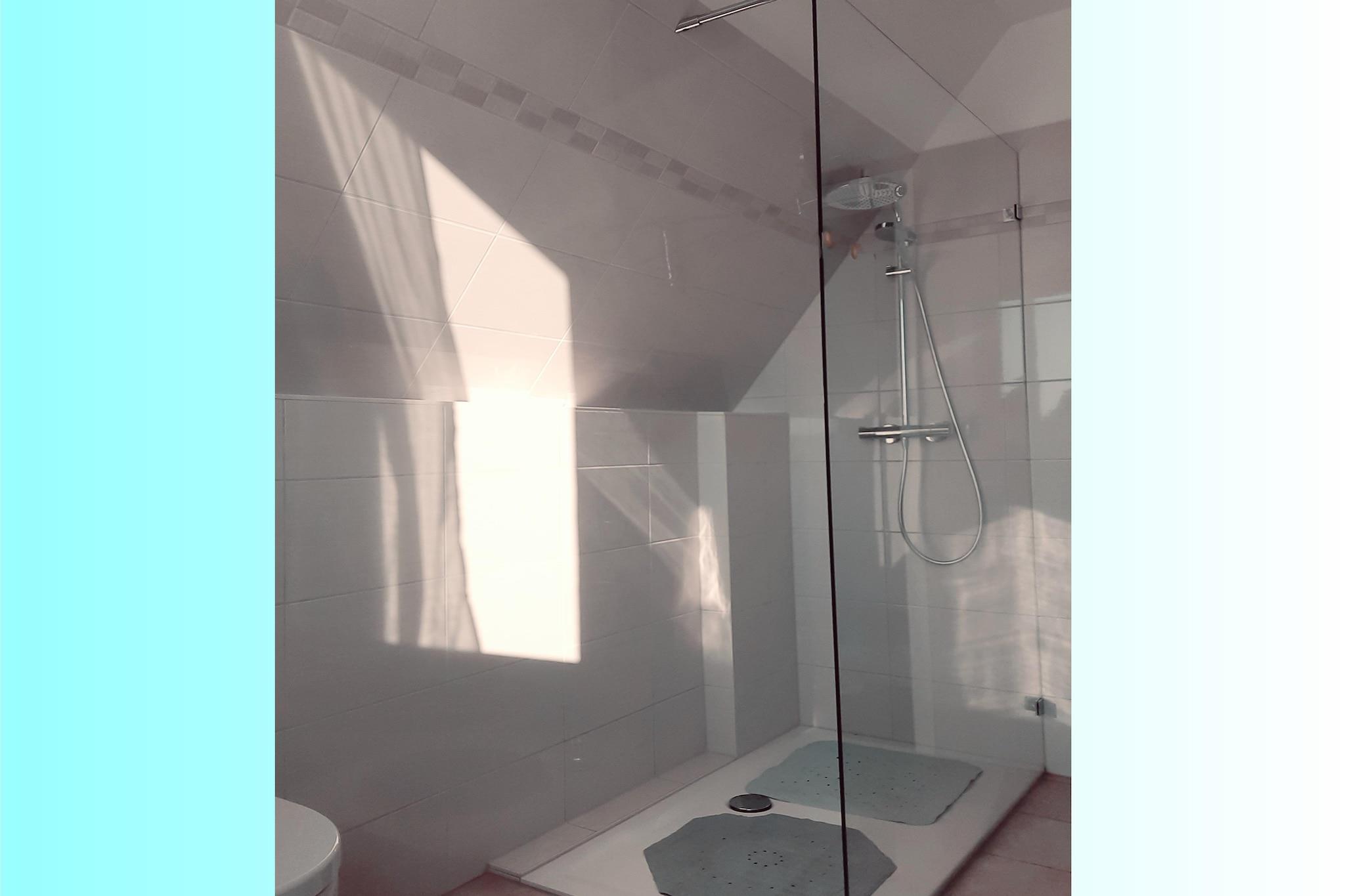 Parterre: (Wohnzimmer(TV(Flatscreen), Sitzecke), Aufenthaltsraum(Sitzecke), offene Küche(Esstisch(6 Personen), Kochplatte(4 Kochplatten, Ceranfeld), Wasserkocher, Toaster, Dunstabzugshaube, Kaffeemaschine, Backofen, Mikrowelle, Spülmaschine, Kühlschrank), Toilette(Waschbecken), Flur, Heizung) In der 1. Etage: (Schlafzimmer(Doppelbett), Schlafzimmer(Etagenbett(80 x 180 cm)), Schlafzimmer(Doppelbett), Badezimmer(Dusche(ebenerdige Dusche), Waschbecken, Toilette), Flur) Keller: (Wirtschaftsraum(Trockner, Waschmaschine)) Terrasse(alleinige Nutzung), Terrasse, Garten(Gemeinschaftliche Nutzung mit dem Eigentümer), Gartenmöbel, Grill, Parkplatz, Sonnenschirm