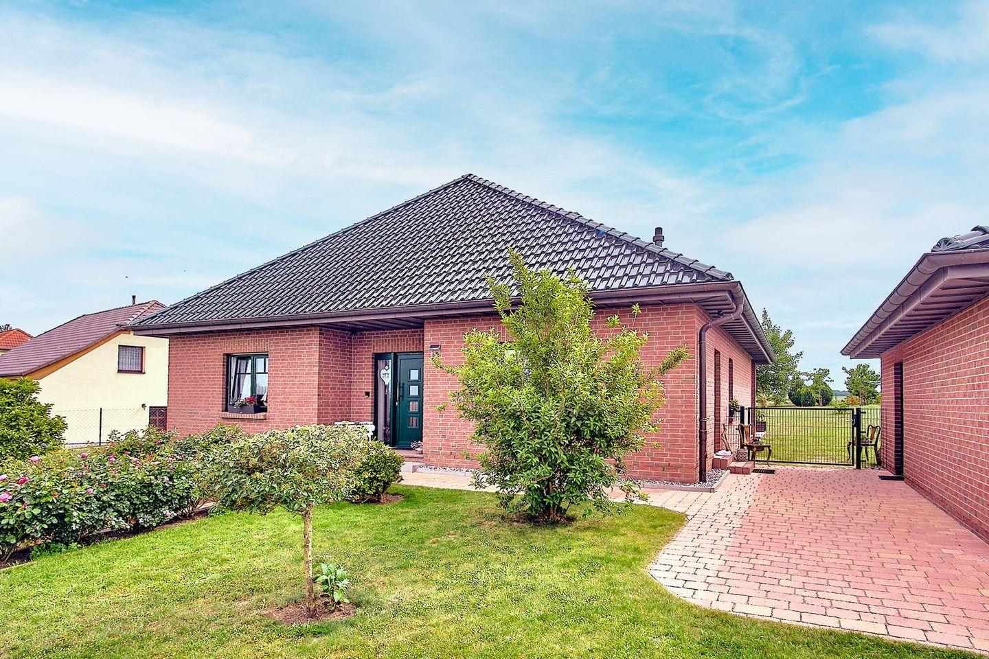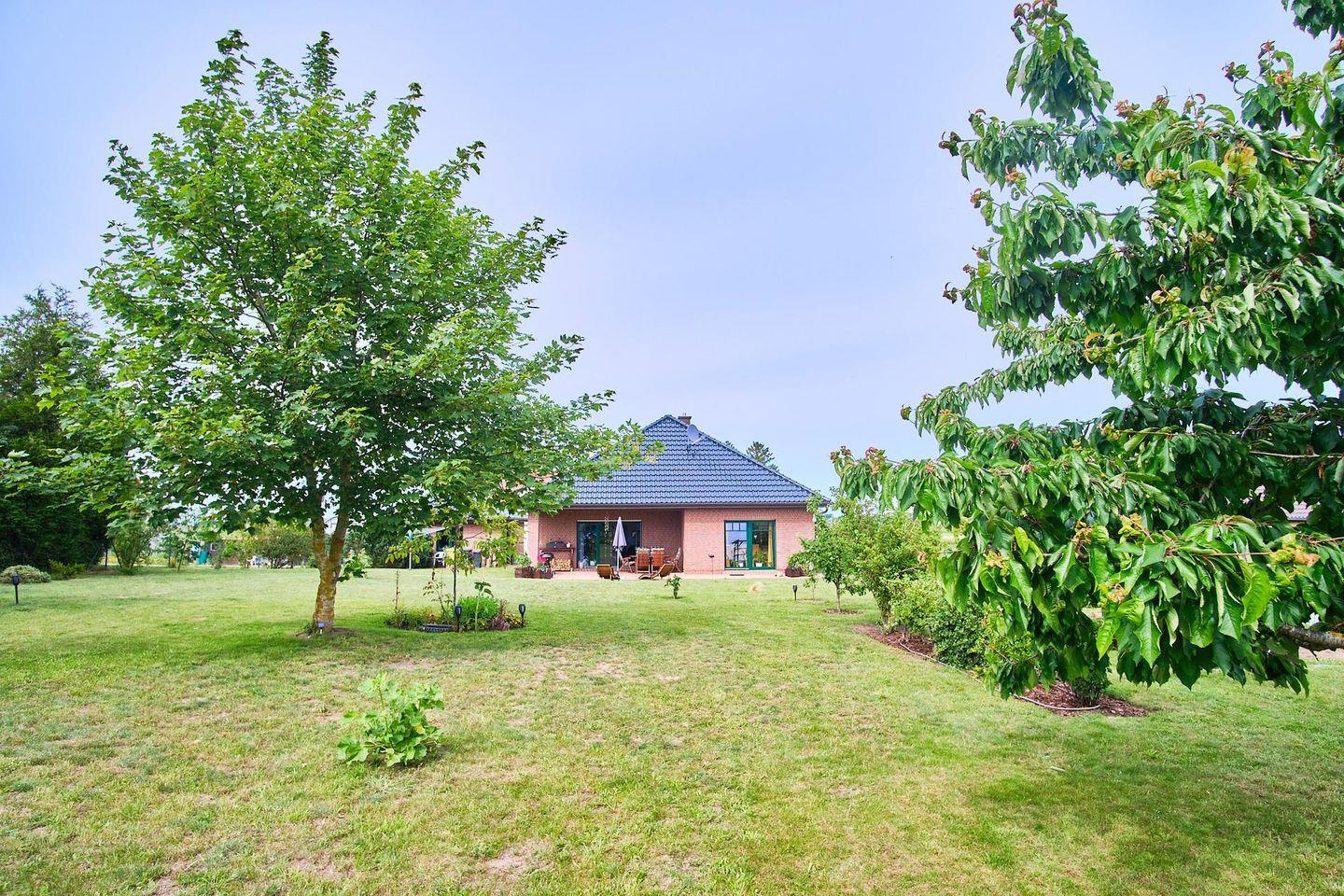 Das im Jahre 2007 erbaute, ebenerdige Ferienhaus verfügt über 1 Wohnraum mit Kamin, 1 Esszimmer, 1 Einbauküche, 2 separate Schlafräume, 1 Bad, 1 Gäste-WC, 1 überdachte Terrasse, einen ca. 1.500 m² großen, komplett eingezäunten Garten sowie eine Garage und PKW-Abstellplätze.