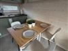 Die moderne Küchenzeile ist mit einem 2-Platten-Ceranfeld, kleinem Backofen, Wasserkocher, Kaffeemaschine und Kühlschrank ausgestattet. Am praktischen Esstisch finden bis zu vier Personen Platz. Die Küche ist vollständig ausgestattet, sodass Sie sich bequem selbst versorgen können.