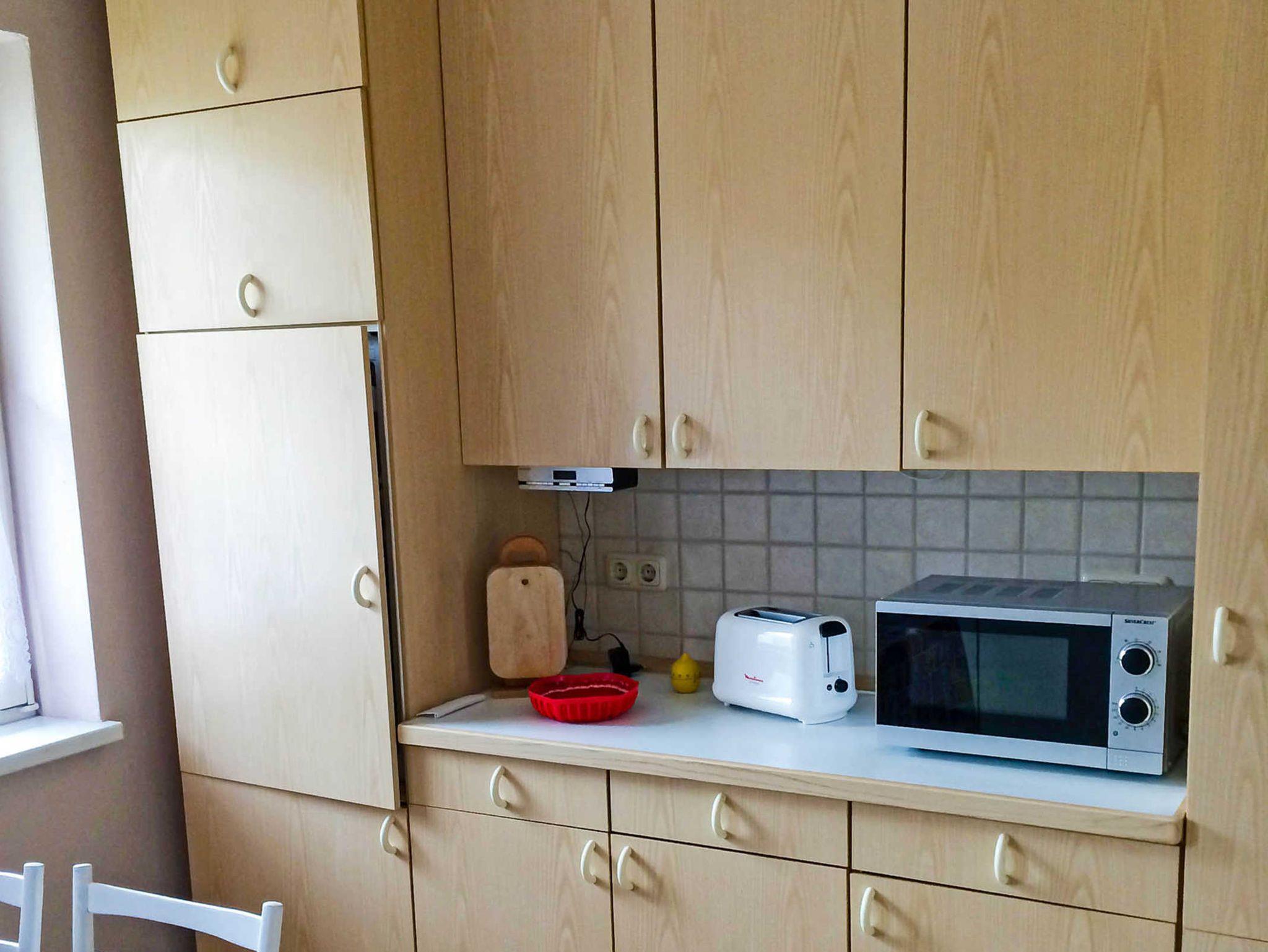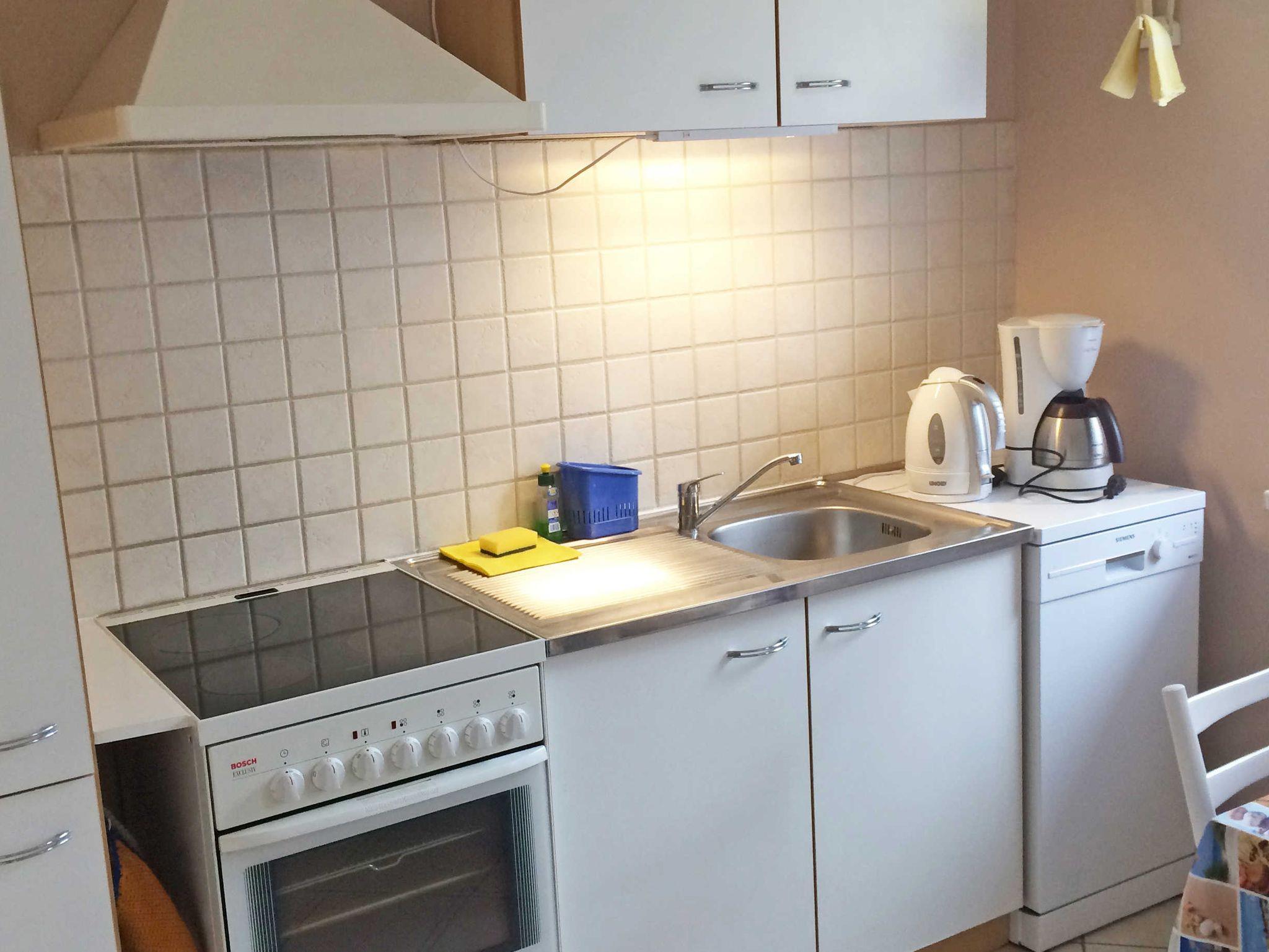 Die seperate Küche ist voll ausgestattet mit Kühlschrank, Mikrowelle, Elektroherd mit Backofen, Spülmaschine, Kaffeemaschine, Wasserkocher, Toaster. Im Kühlschrank befindet sich ein kleines Gefrierfach.
