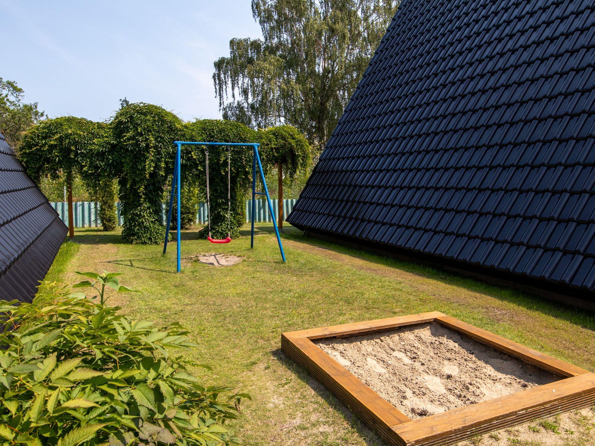 Im Erdgeschoss findest du ein geräumiges Wohnzimmer mit TV, einer gemütlichen Sitzecke und einem Esstisch. Die angrenzende offene Küche ist vollständig ausgestattet, inklusive Kühlschrank, Geschirrspüler und Kaffeemaschine. Außerdem gibt es im Erdgeschoss ein Badezimmer mit Dusche, WC und einer Waschmaschine. Über eine Raumspartreppe gelangst du ins Obergeschoss, wo sich zwei Schlafzimmer mit insgesamt 5 Einzelbetten (90x200) befinden. Jede unserer 70 m² großen Finnhütten verfügt über eine eigene Terrasse und einen Grillplatz. Zudem stehen eine Tischtennisplatte, ein Sandkasten und eine Schaukel für Kinder zur gemeinsamen Nutzung bereit.