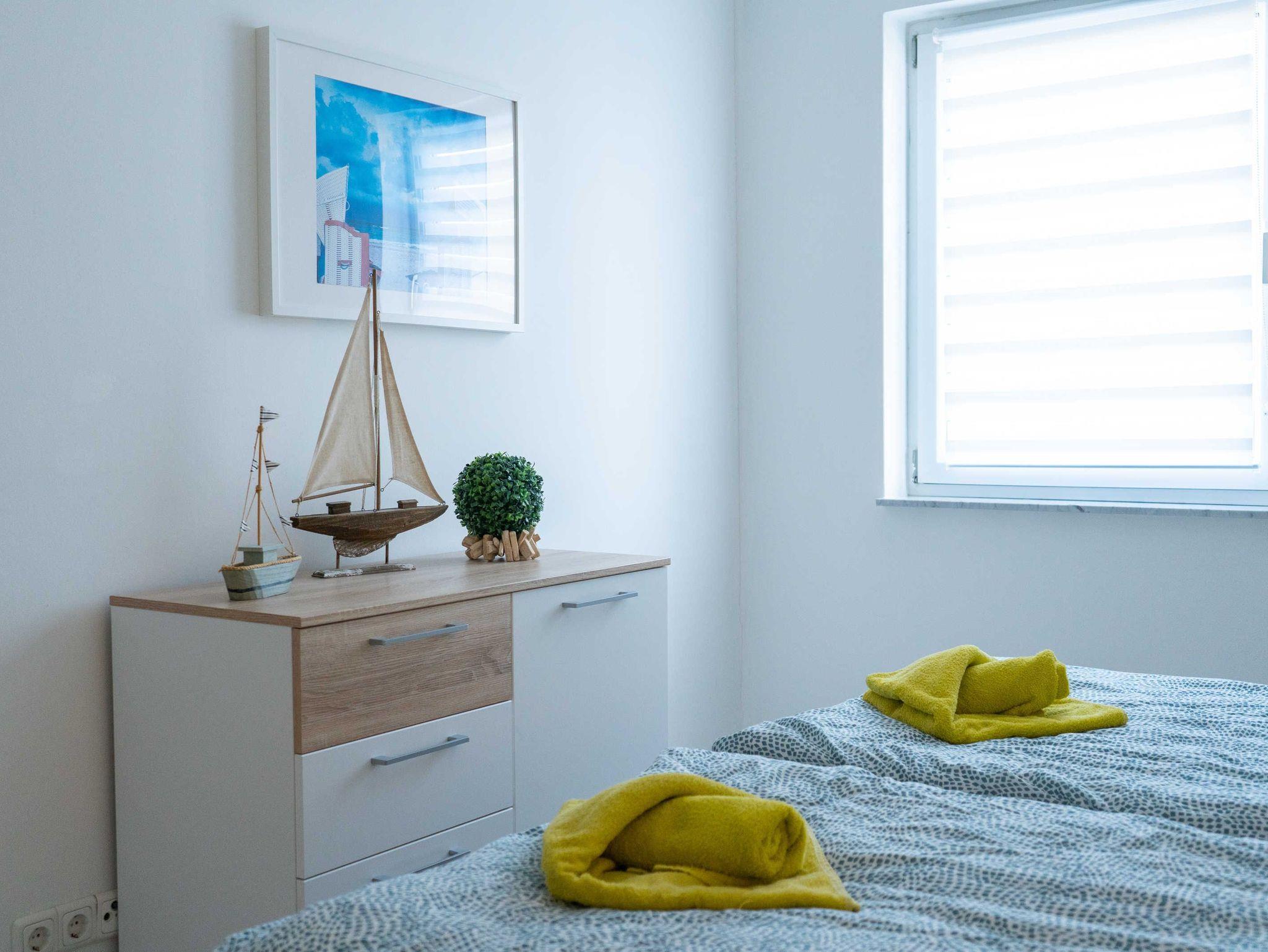 Das lichtdurchflutete Bad mit Dusche und Badewanne bietet viel Raum für Entspannung. Zusätzlich steht ein Gäste-WC zur Verfügung. WLAN und eine Waschmaschine sind selbstverständlich vorhanden, damit Sie sich rundum wohlfühlen.