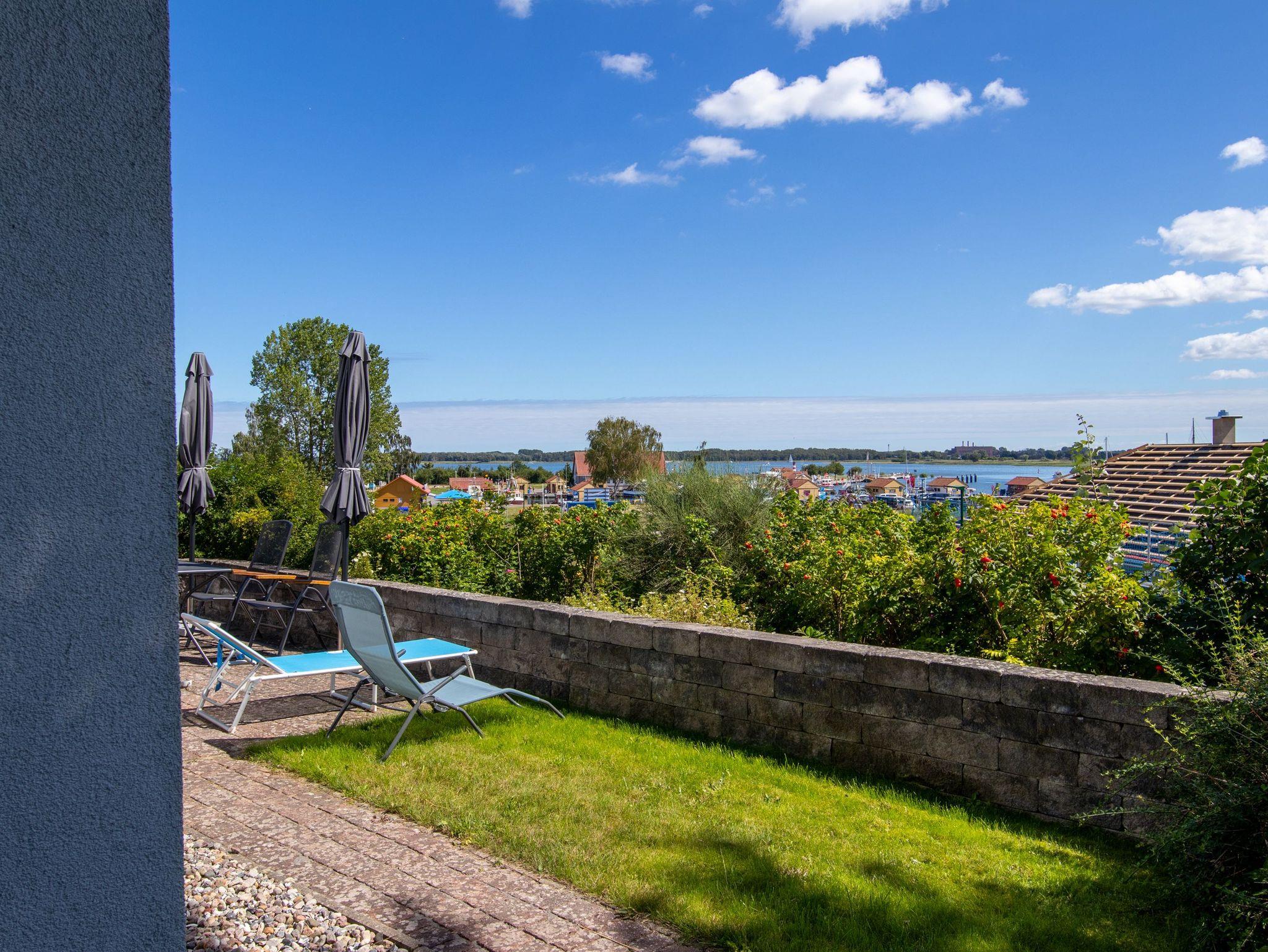 Das reetgedeckte, bildschöne Ferienhaus mit Seeblick und großem Garten liegt auf einer Anhöhe im idyllischen Fischerdorf Freest nah am kleinen Fischerhafen in Freest.