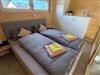 Über eine Treppe mit integriertem Stauraum erreichen Sie das Schlafzimmer im Obergeschoss. Dort erwartet Sie ein komfortables Doppelbett (180 x 200 cm). Dieses besteht aus zwei Einzelbetten (je 100 x 200 cm), die bei Bedarf auseinandergezogen werden können so kann jeder Gast in einem eigenen Bett schlafen.