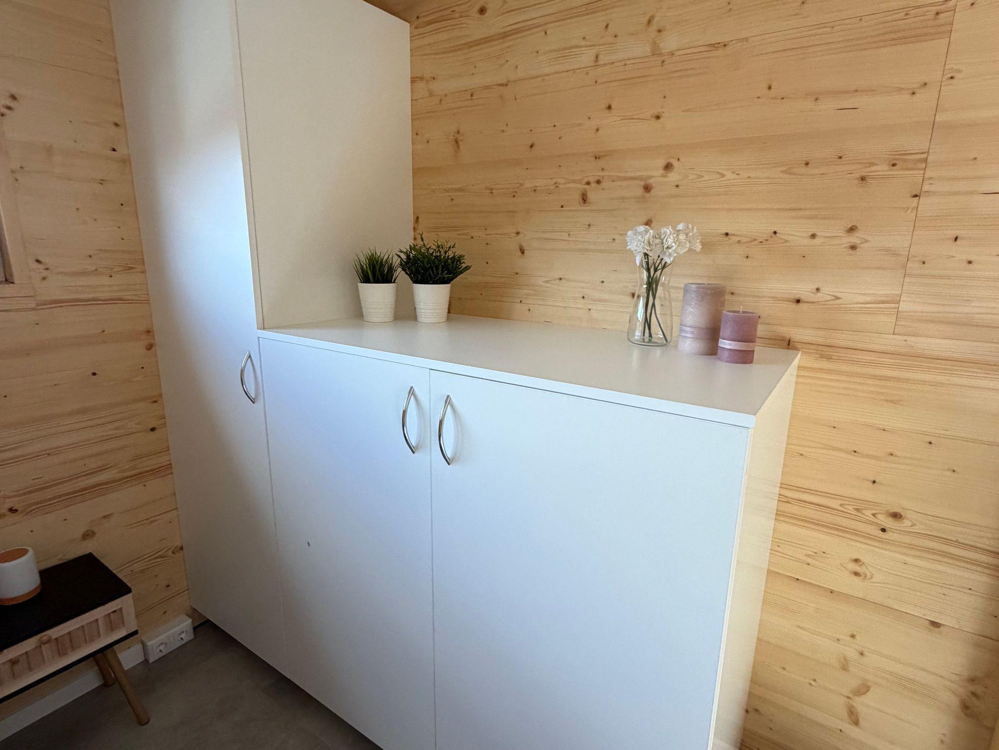 Unser modernes Tiny House in ökologischer Holzbauweise bietet auf ca. 35 m² Platz für bis zu 4 Personen. Freu dich auf stilvolles Design, eine voll ausgestattete Küche, gemütliche Schlafplätze, Klimaanlage (Heizen & Kühlen) und eine sonnige Terrasse.