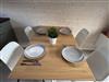 Die moderne Küchenzeile ist mit einem 2-Platten-Ceranfeld, kleinem Backofen, Wasserkocher, Kaffeemaschine und Kühlschrank ausgestattet. Am praktischen Esstisch finden bis zu vier Personen Platz. Die Küche ist vollständig ausgestattet, sodass Sie sich bequem selbst versorgen können.