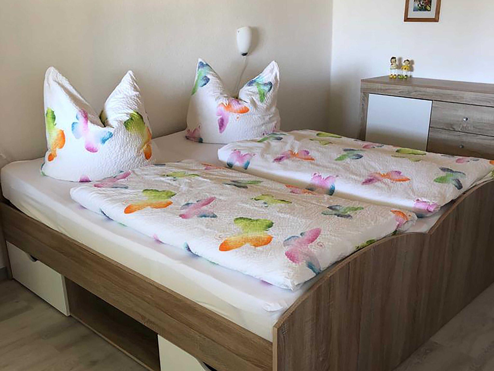 Die Unterkunft ist 60 m² groß und beheizbar. Sie besteht aus einem Schlafzimmer mit zwei zusammenstehenden Einzelbetten (90x200cm), Wohnzimmer mit offener Küche und Badezimmer mit ebenerdiger Dusche.