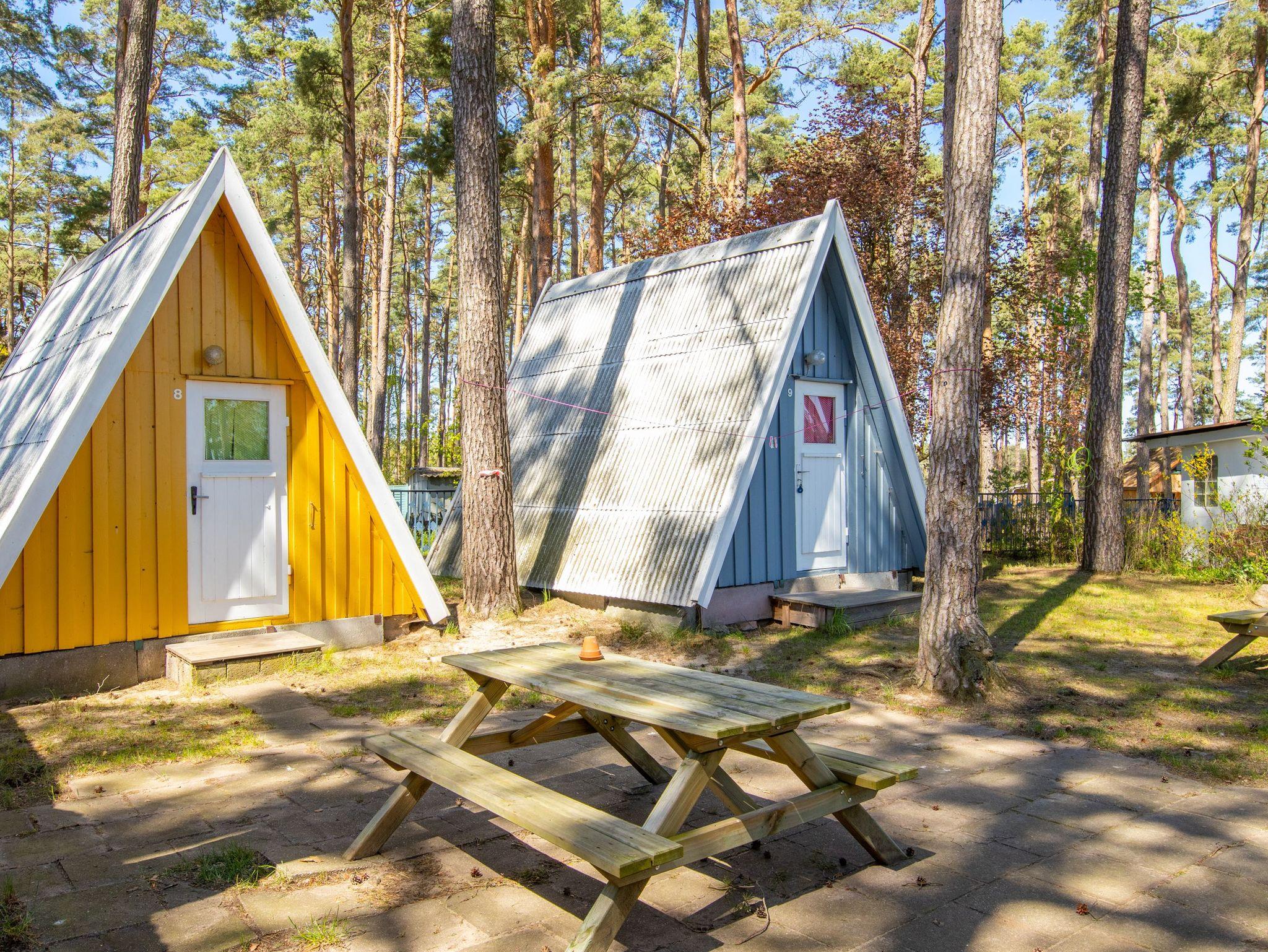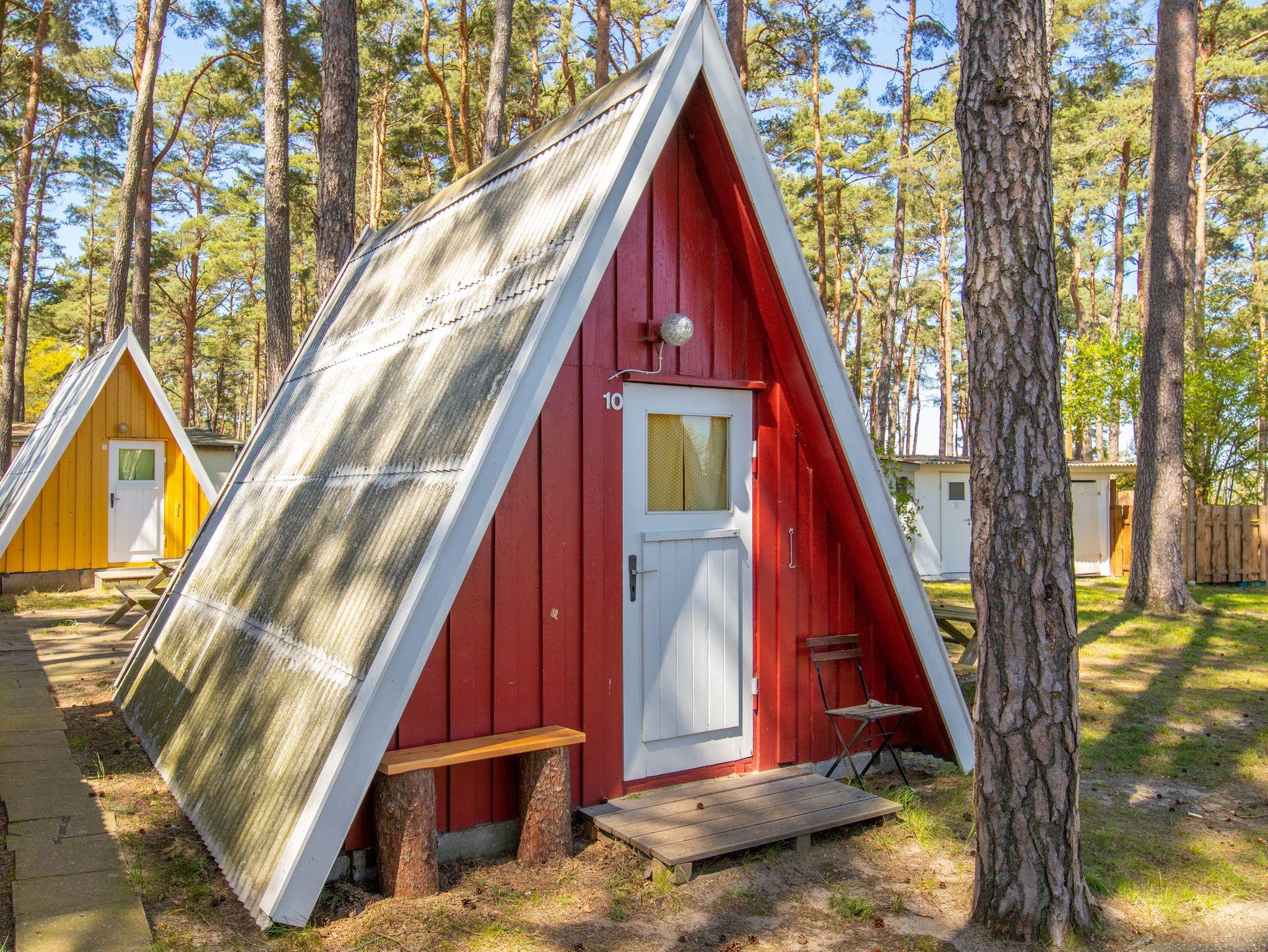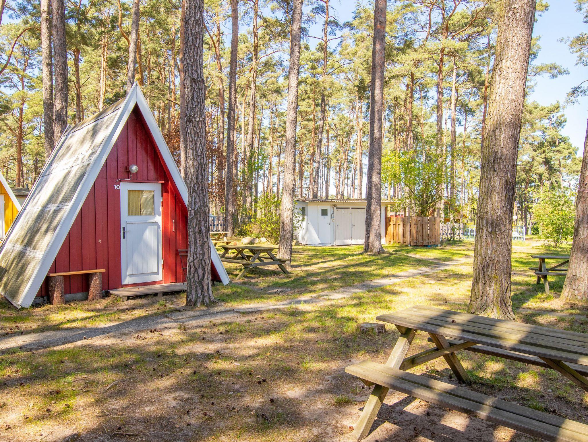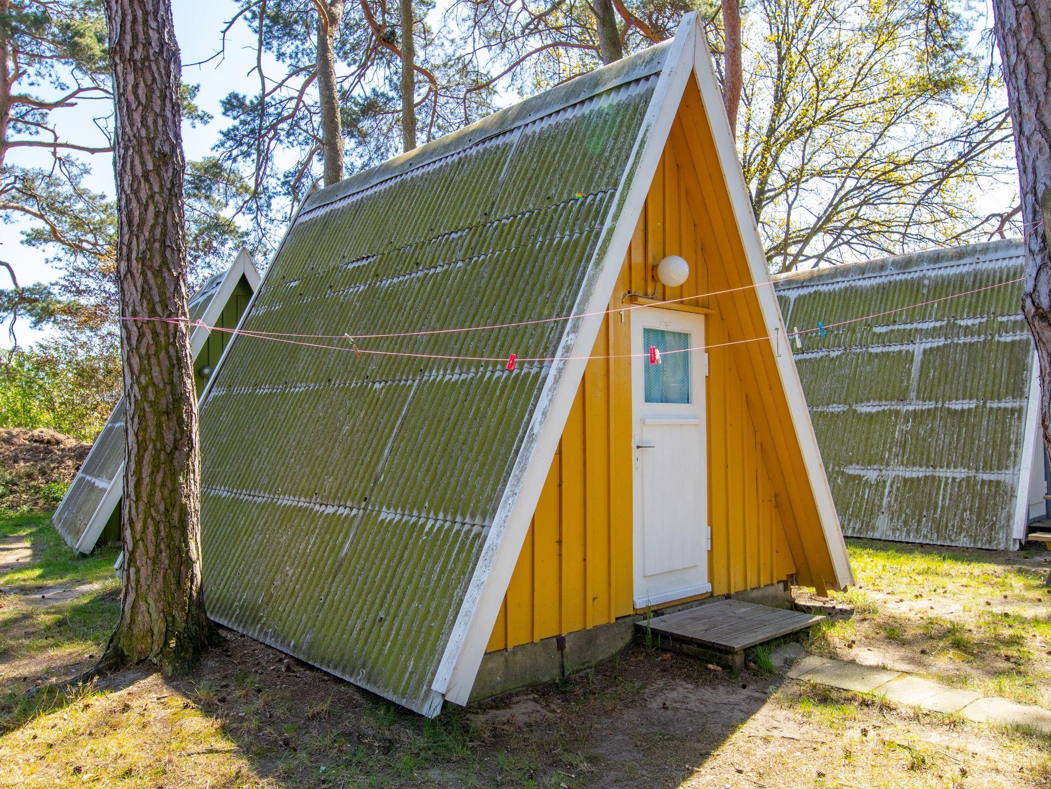 Gemütliche Finnhütte im Ostseecamping Peenemündung, ideal für naturnahes Campen nahe Ostsee und Radwegen.