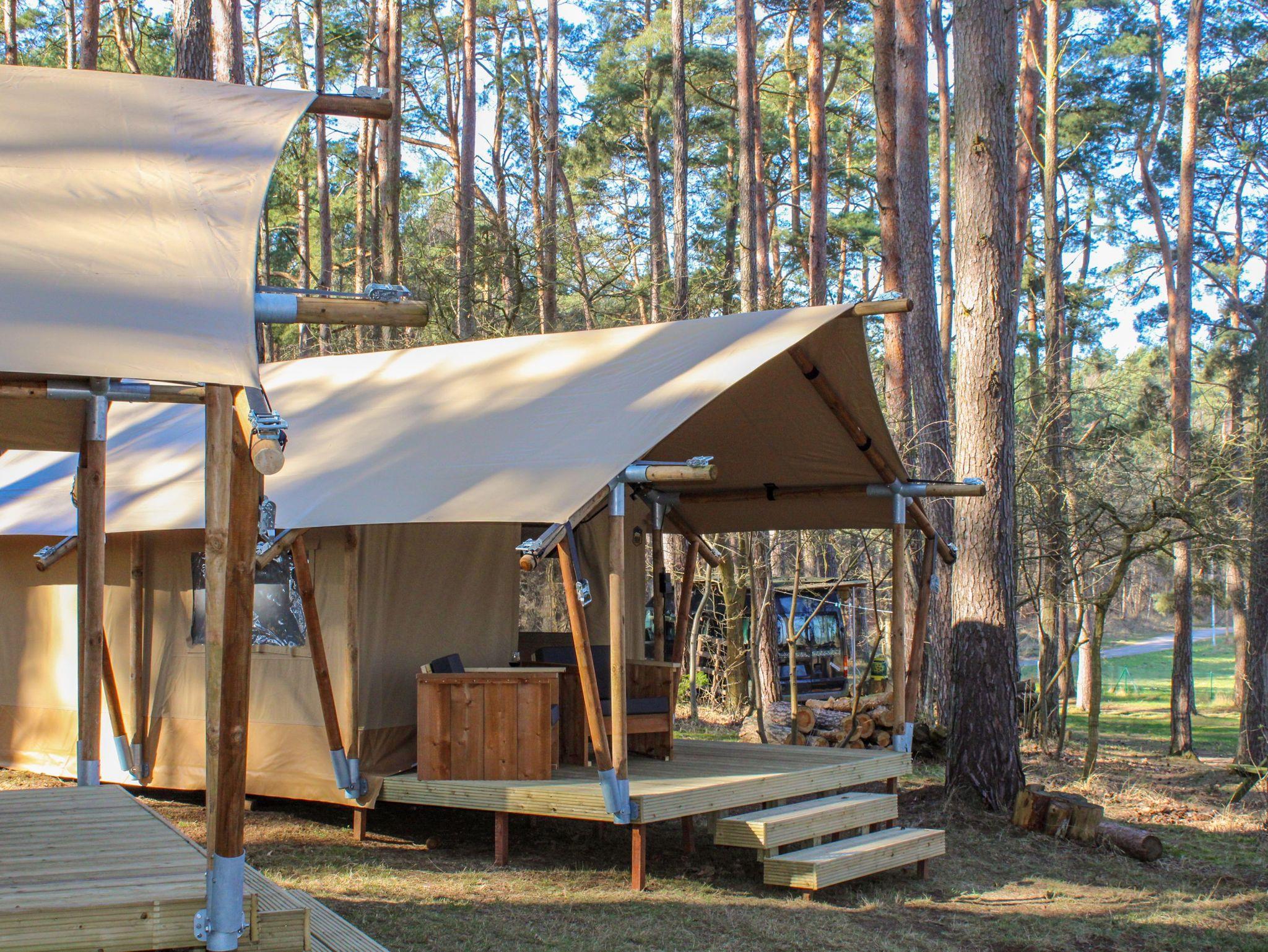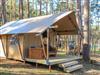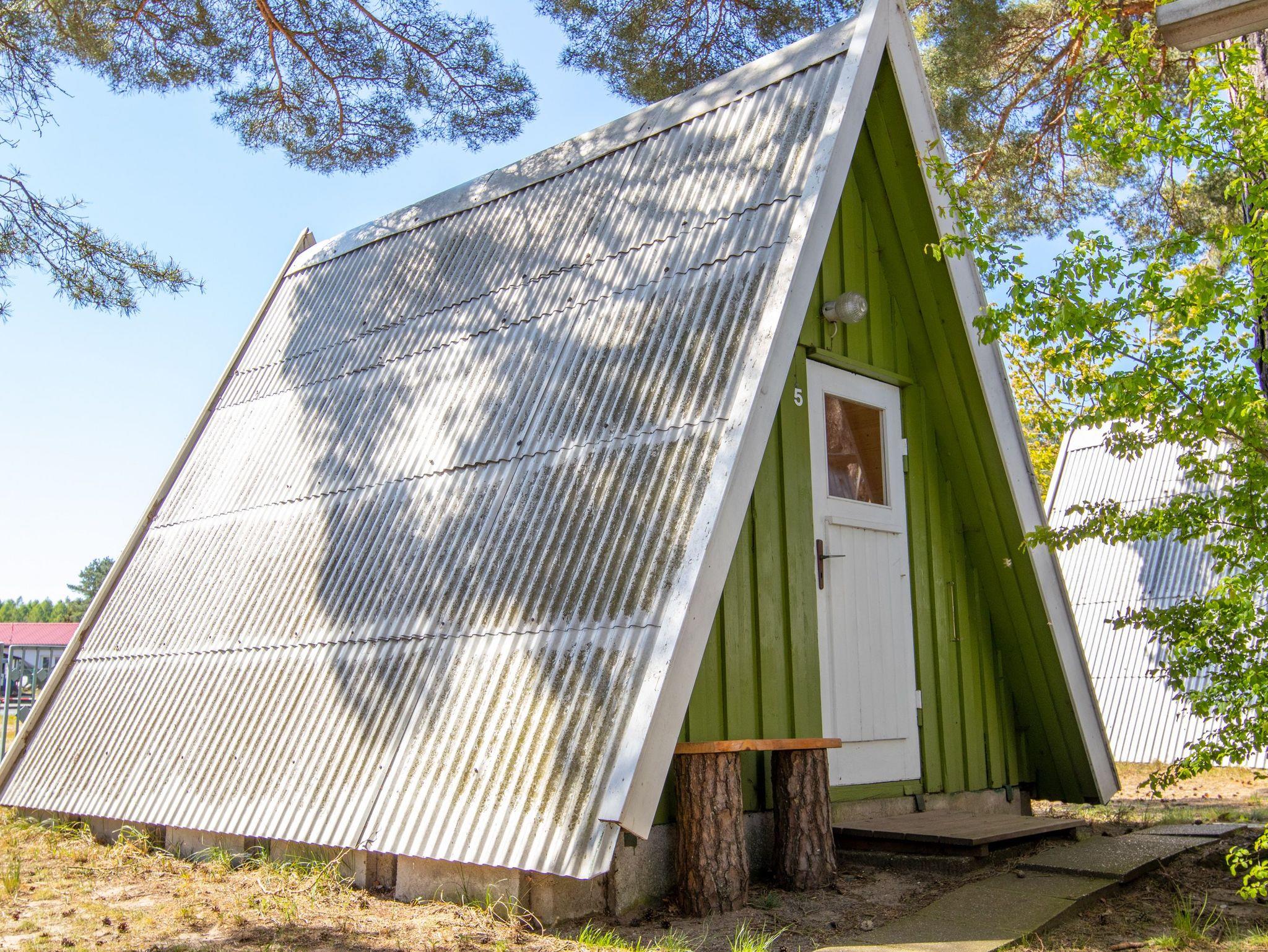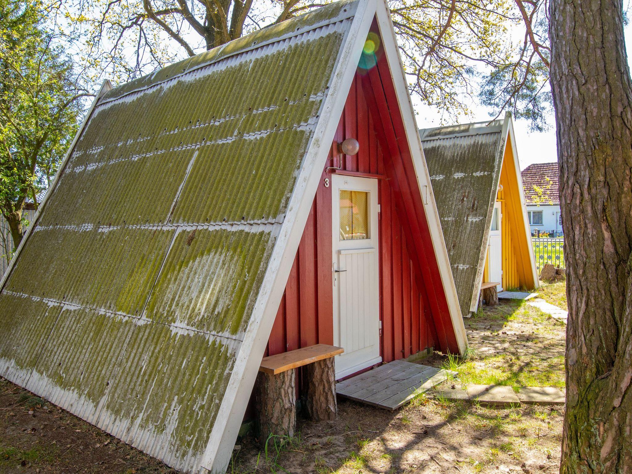 Gemütliche Finnhütte im Ostseecamping Peenemündung, ideal für naturnahes Campen nahe Ostsee und Radwegen.
