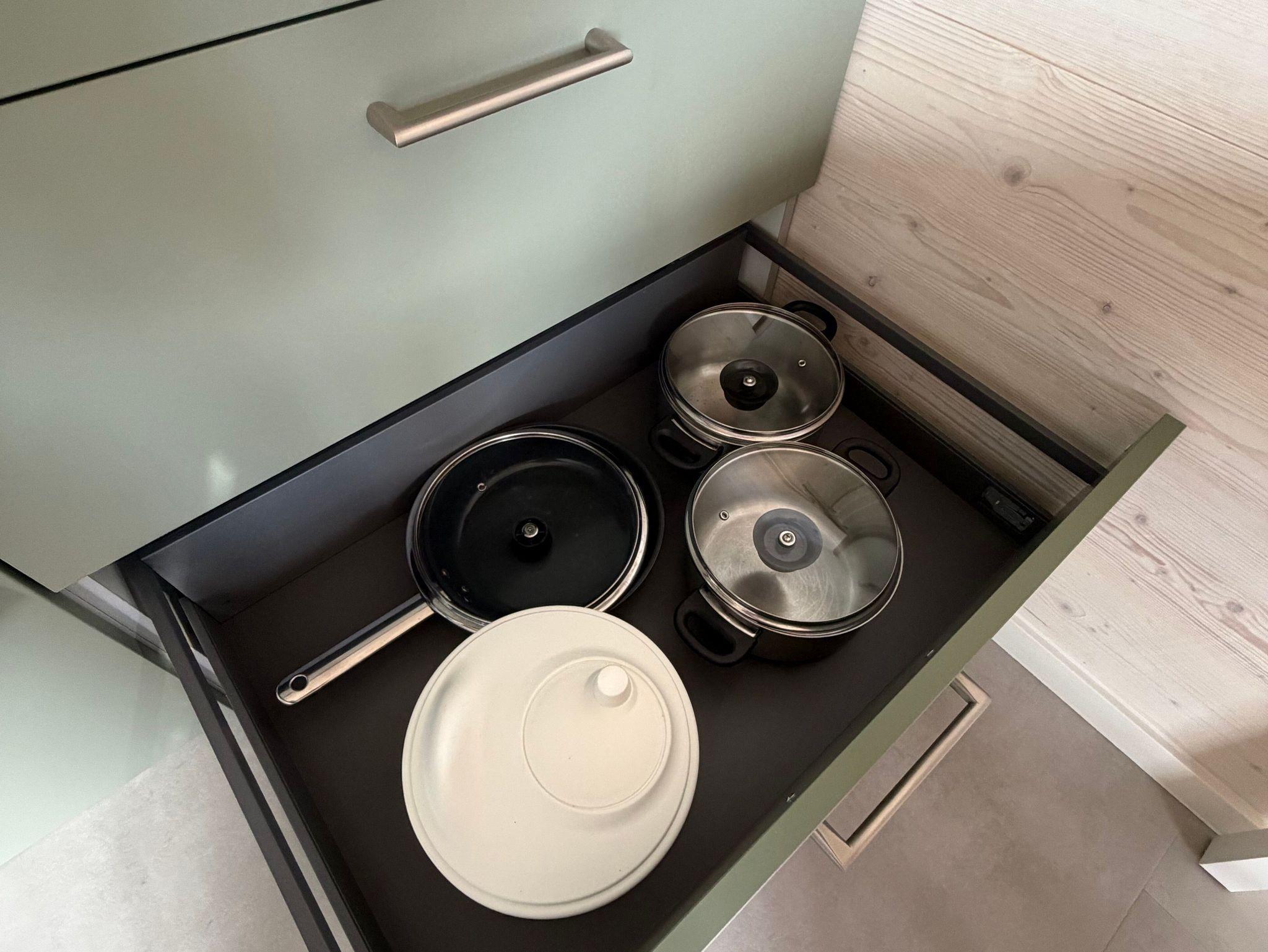 Zusammen mit der Schlafcouch im Wohnbereich (140 cm breit, mit Matratze) bietet das Tiny House Platz für maximal 4 Gäste. Für besonderen Schlafkomfort stellen wir Ihnen Decken in Übergröße (220 x 155 cm) zur Verfügung.