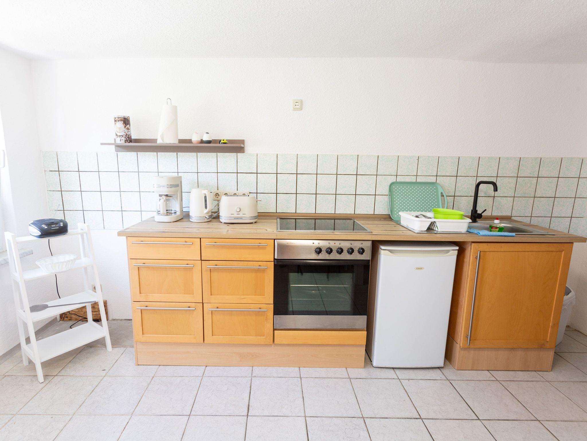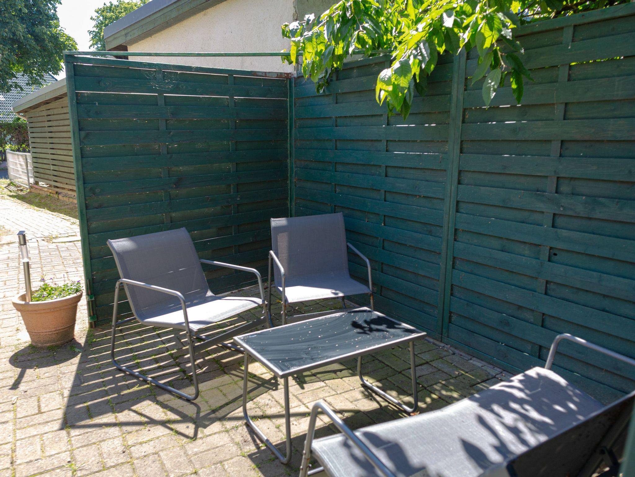 Die Ferienwohnung Erdgeschoss an der Marina in Kröslin bietet auf 60 m² viel Platz für 2 Personen. In dieser gemütlichen Wohnung erwartet dich ein Schlafzimmer mit einem bequemen Doppelbett (140x200) und einem Kleiderschrank, in dem du deine Sachen ordentlich verstauen kannst. Das Wohnzimmer ist mit einem gemütlichen Sofa ausgestattet, auf dem du nach einem erlebnisreichen Tag vor dem Fernseher entspannen kannst. Die separate Küche ist vollständig ausgestattet und bietet alles, was du für eine unkomplizierte Selbstverpflegung benötigst: Backofen mit Herd, Kaffeemaschine, Mikrowelle, Toaster und einen Wasserkocher sowie Küchenutensilien des täglichen Bedarfs. Der Esstisch lädt zu gemeinsamen Mahlzeiten ein und als besonderes Highlight gibt es in der Küche einen gemütlichen Holzofenherd, der für eine besonders heimelige Atmosphäre sorgt. Das Bad ist modern gestaltet und bietet eine ebenerdige Dusche sowie ein WC. Im Innenhof findest du eine Terrasse mit Sitzgelegenheiten. Hier kannst du die frische Luft genießen und bei einem Glas Wein den Tag ausklingen lassen.