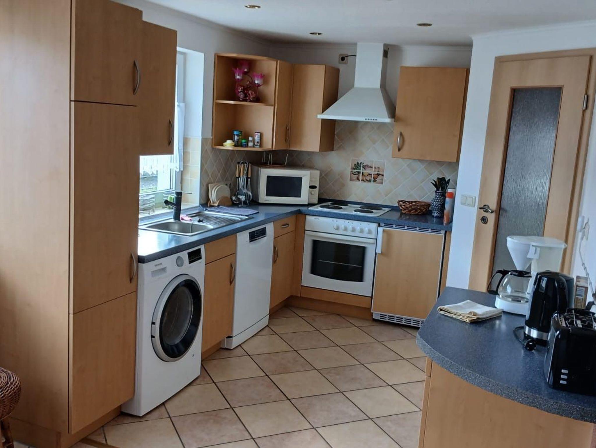 Die offene Küche ist bestens ausgestattet, sodass Sie sich im Urlaub flexibel selbst versorgen können: inklusive Spülmaschine, Waschmaschine, 4Platten-Herd mit Backofen, Kühlschrank und Mikrowelle. Das erste Schlafzimmer ist mit zwei Einzelbetten, Kleiderschrank und TV eingerichtet. Im zweiten Schlafzimmer schlafen Sie in einem Doppelbett und nutzen einen großen Kleiderschrank für Ihr Gepäck. Im Badezimmer sorgen Dusche, WC und eine angenehme Fußbodenheizung für zusätzlichen Komfort.