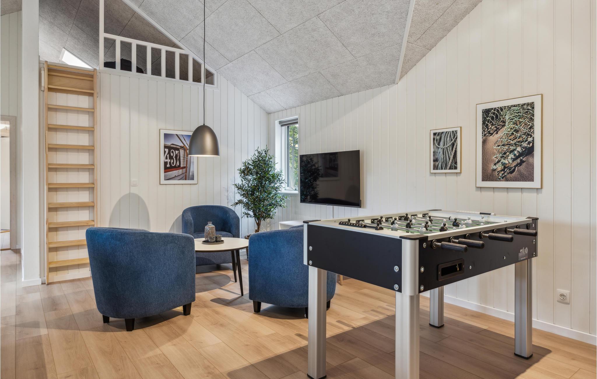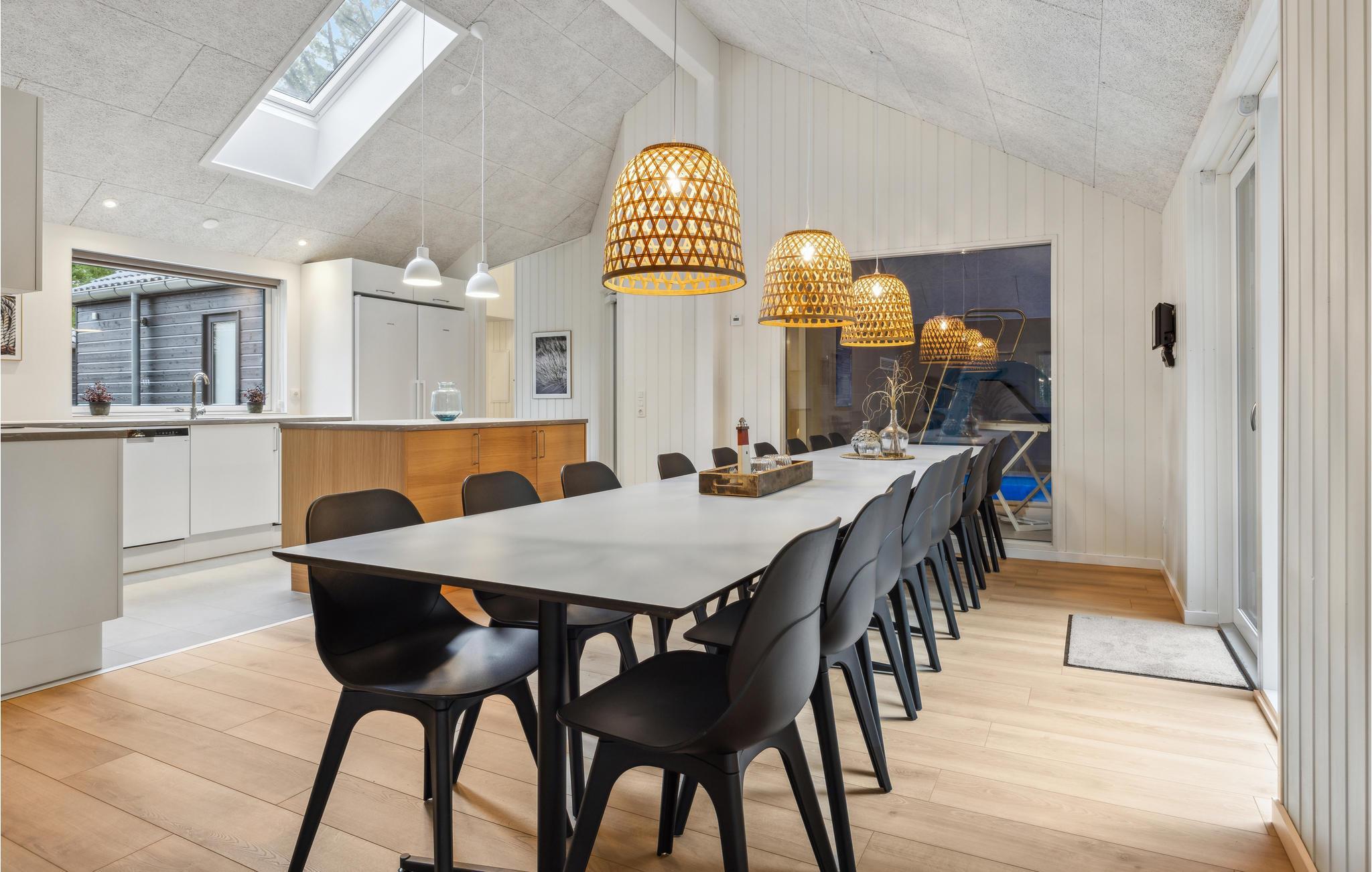 Dieses moderne Ferienhaus befindet sich in einem kleinen Ferienhausdorf in der Nähe von Krakow am See und unweit des Krakower Sees. Es bietet ein hochwertiges, helles Interieur und Platz und Komfort für Ihren Familienurlaub oder einen Urlaub mit Freunden. Im großzügigen Wohnbereich mit offener Küche können Sie gemeinsam kochen und entspannen und am großen Esstisch gesellige Stunden bei leckeren Mahlzeiten oder einem Spieleabend verbringen. Fordern Sie sich im Aktivitätsraum gegenseitig zu einer Runde Tischtennis, Kicker oder Darts heraus und genießen Sie zwischendurch eine kalte Erfrischung an der Bar. Der schöne Pool mit Wasserrutsche lädt Groß und Klein zu vergnügsamen Stunden ein. Oder genießen Sie eine Massage im großen Whirlpool für 6 Personen und entspannen Sie sich danach in der eigenen Sauna. Das Haus verfügt über sieben Schlafzimmer und einen Dachboden mit vier Matratzen, der besonders gut für Kinder geeignet ist, die es sich dort gemütlich machen möchten. Die drei Badezimmer ergänzen das Angebot.
