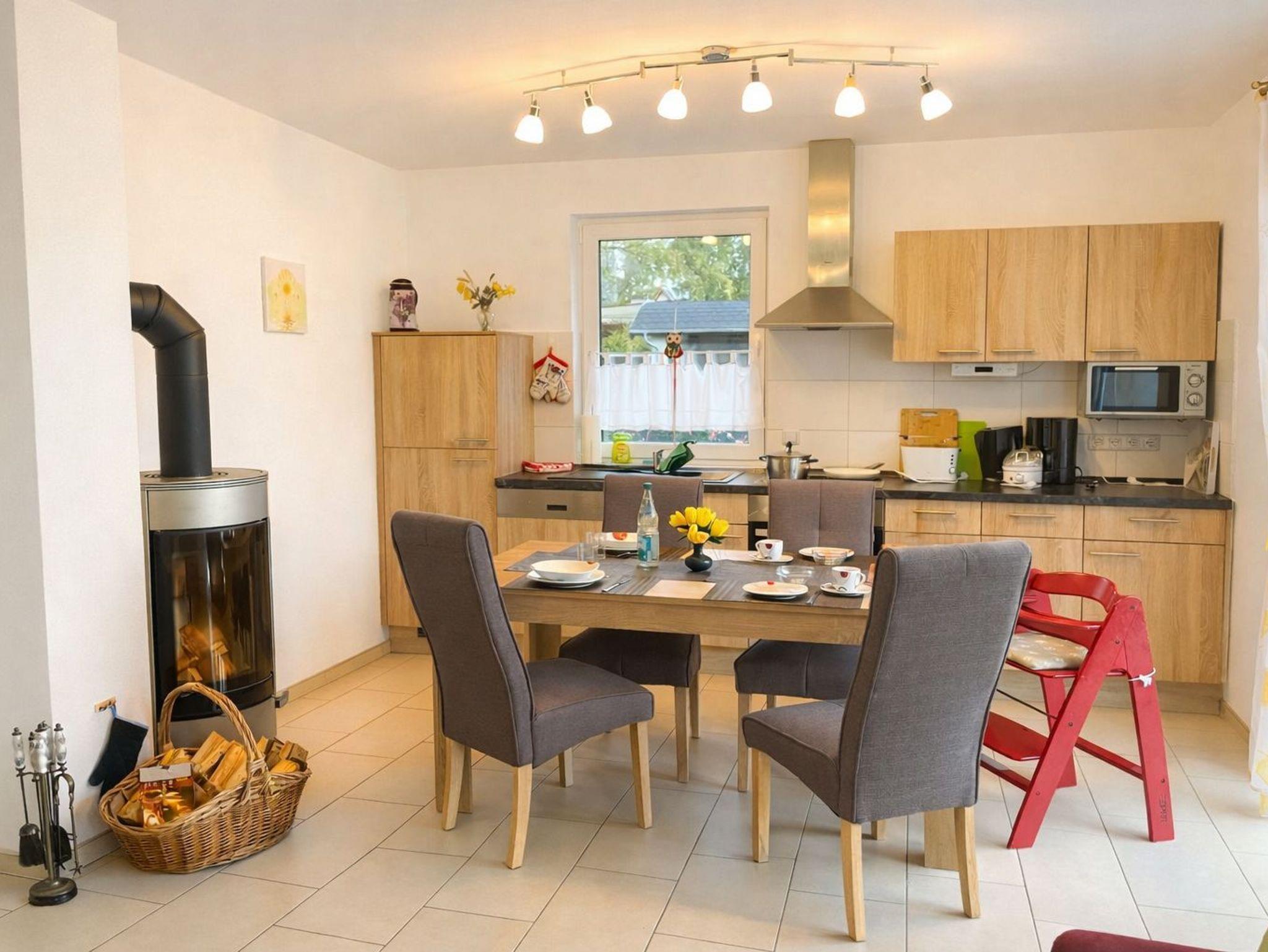 Die Küche verfügt über Backofen, 4- Platten- Ceran- Kochfeld, Kühl-/ Gefrierkombination, Spülmaschine, Toaster, Kaffeemaschine, Mikrowelle sowie ausreichend Geschirr sowie Esstisch mit Stühlen. Im lichtdurchfluteten Wohnzimmer befindet sich eine gemütliche Wohnlandschaft sowie Flachbildschirm, Telefon, kostenloser W-LAN-Zugang und Radio. Ein Gäste-WC ist zusätzlich vorhanden.