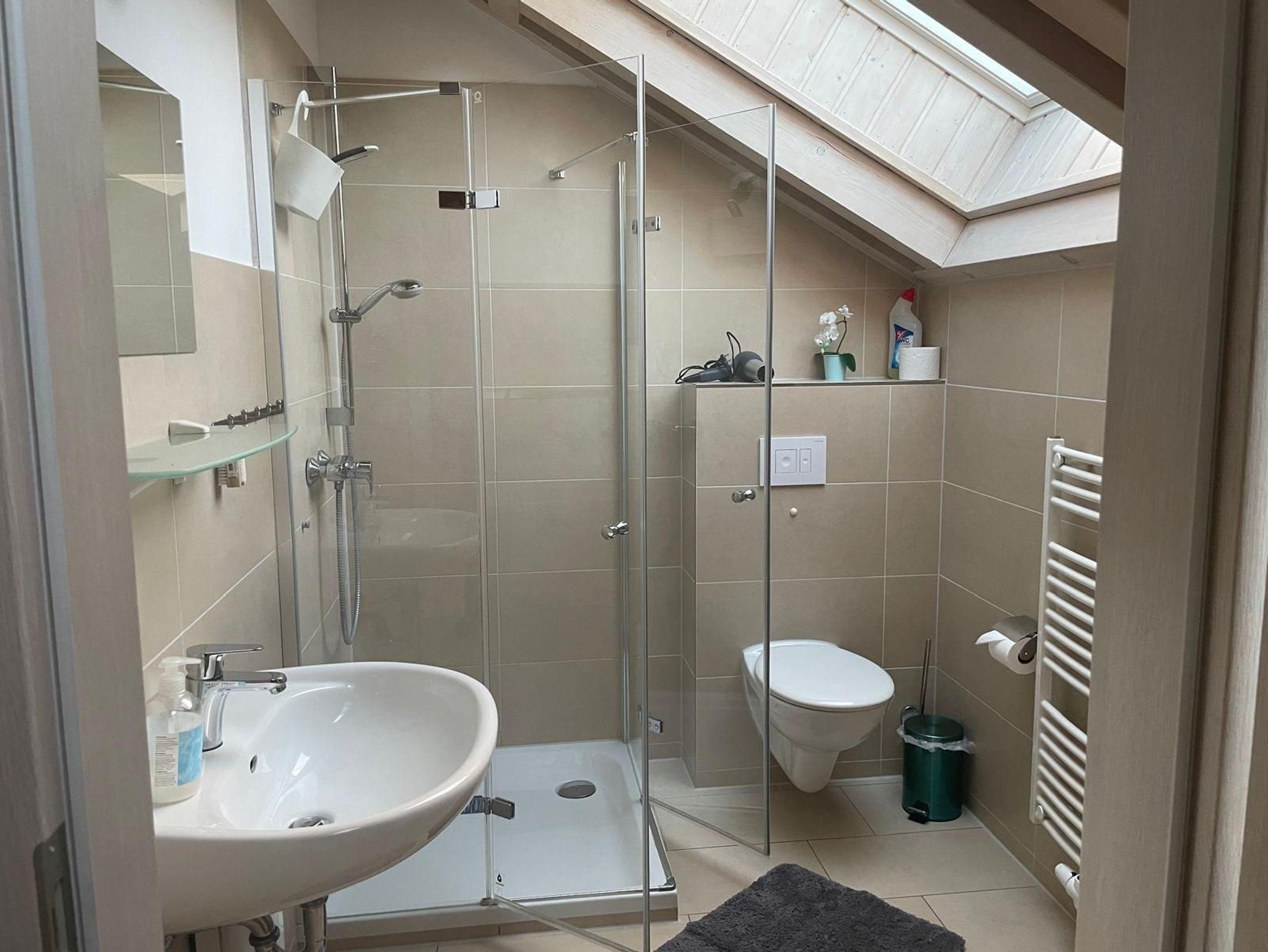 Ein modern eingerichtetes Badezimmer mit Du/ WC, Badmöbel und Haartrockner komplettiert die gehobene Ausstattung. Duschhocker und Wäscheständer sind vorhanden.
