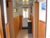 Die Küche mit Esstisch ist durch einen Vorhang vom Wirtschaftsraum abgetrennt.