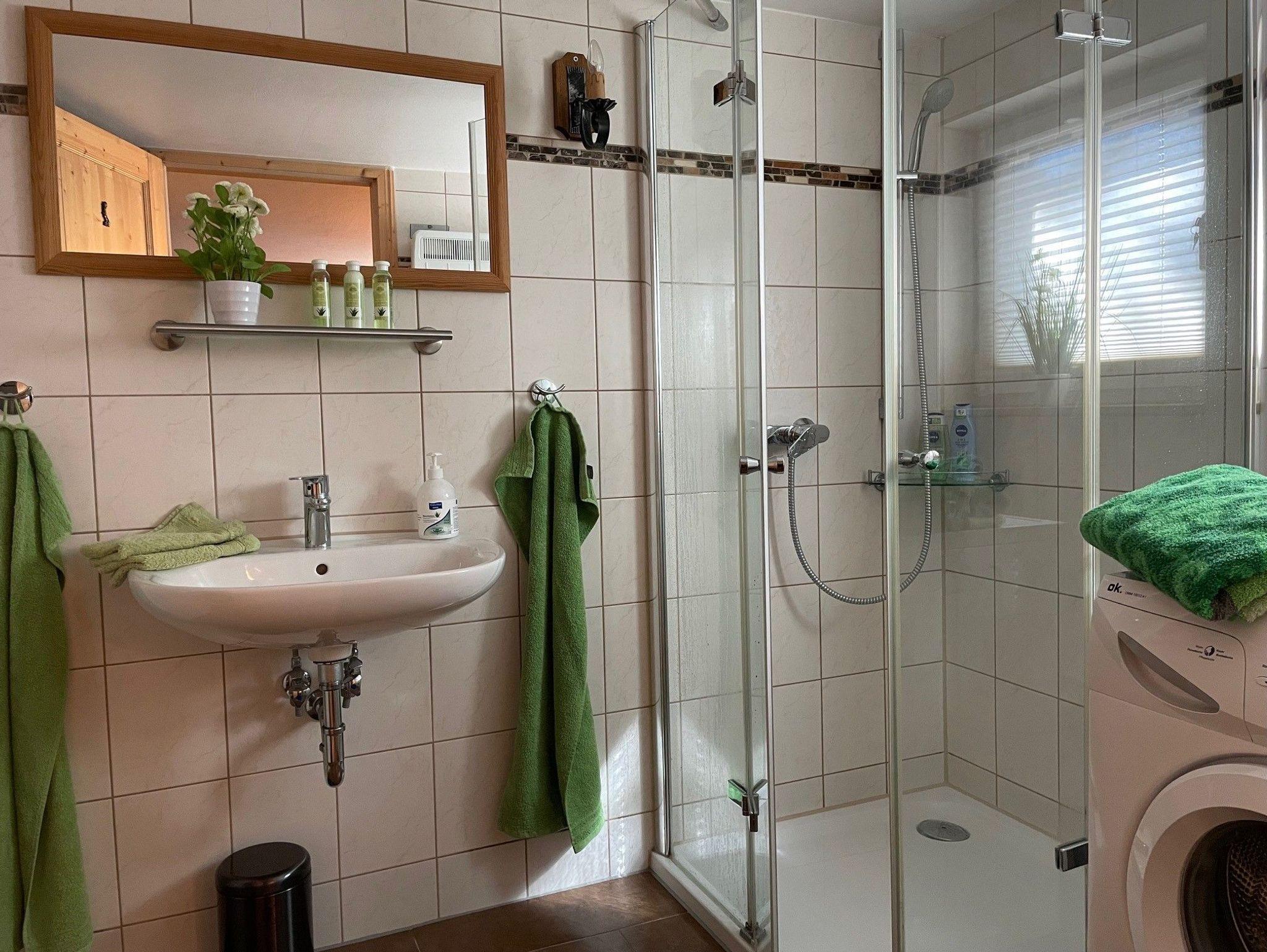 Ein weiterer Schlafraum bietet zwei Einzelbetten mit TV- Gerät, ebenso verfügt das hier gelegene zweite Badezimmer mit Dusche/ WC auch eine Waschmaschine.