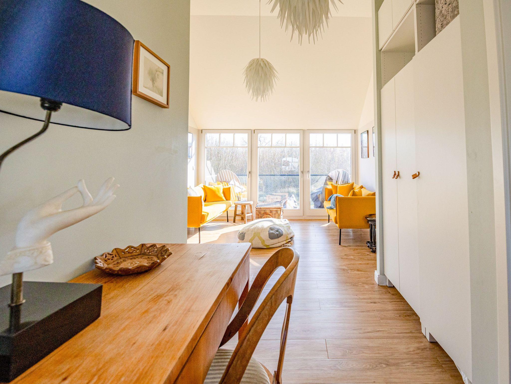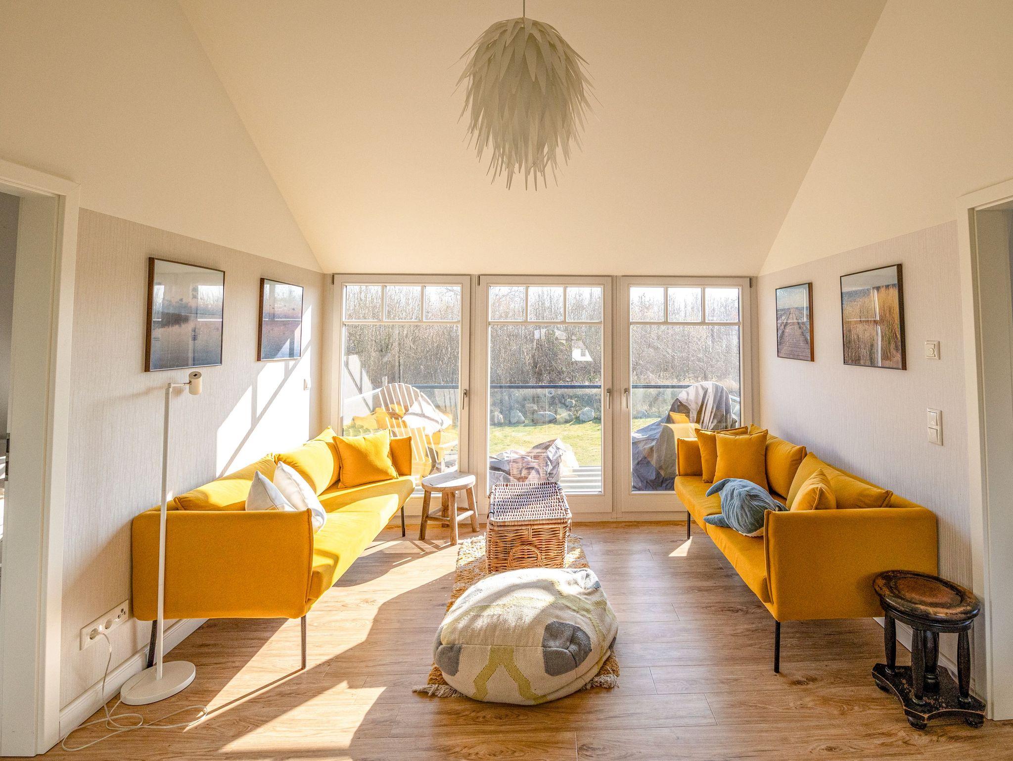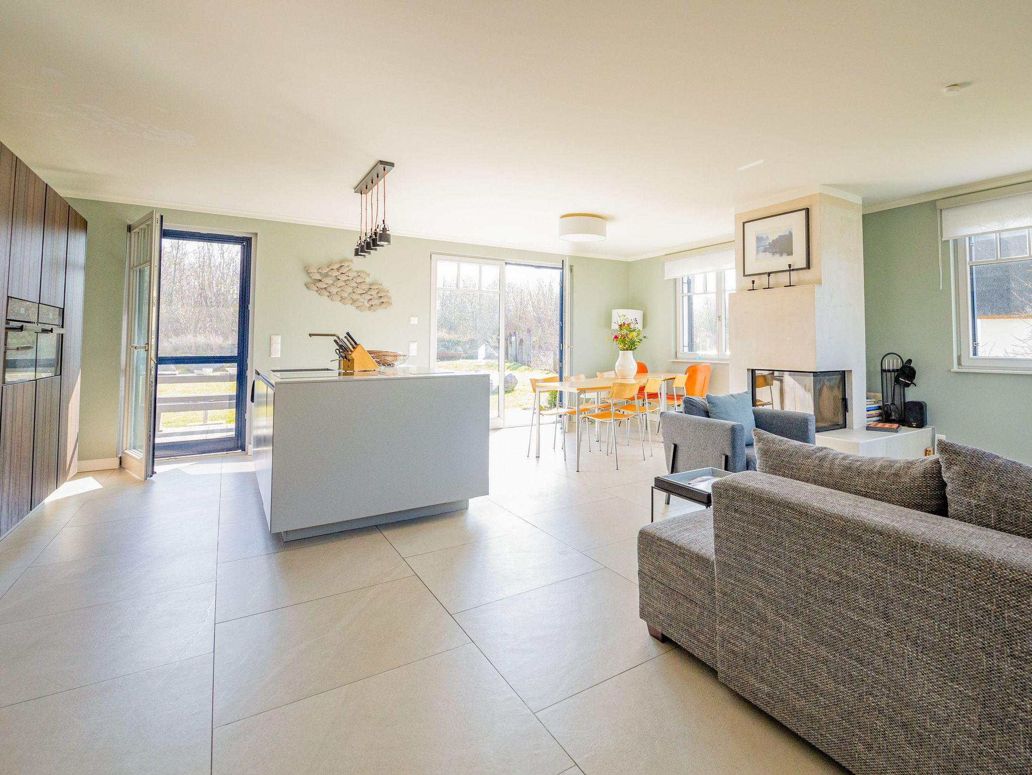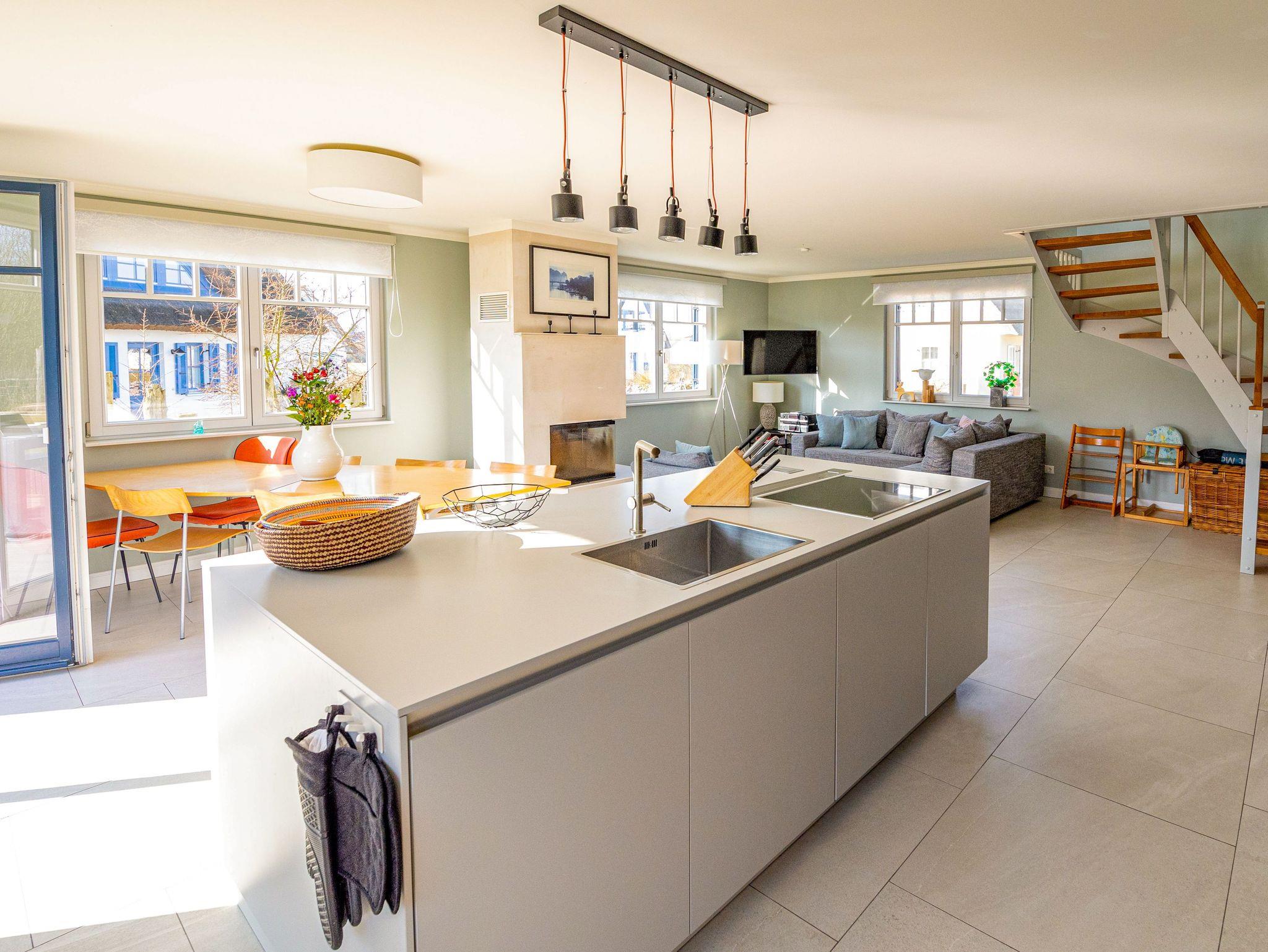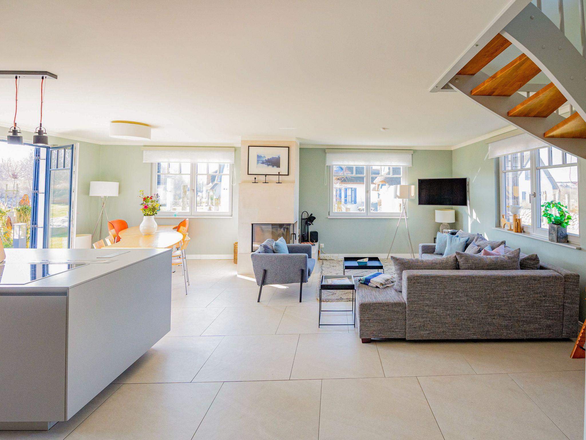 Das exklusive Reetdachhaus in Parow bietet auf 133 m² Platz für bis zu 8 Personen und kombiniert auf zwei Etagen stilvolles Ambiente mit modernem Komfort. In einer ruhigen, familienfreundlichen Ferienhaussiedlung direkt hinter dem Deich am Strelasund gelegen, bist du nur wenige Schritte vom Wasser entfernt. Es erwarten dich großzügige Wohnbereiche ? im Erdgeschoss ein Wohnzimmer mit offener Küche und Kamin sowie im Obergeschoss eine gemütliche Leseecke mit Schreibtisch, perfekt für entspannte Momente mit einem Buch oder zum Arbeiten. Die hochwertig ausgestattete Küche lässt keine Wünsche offen, sodass du hier kulinarische Highlights zaubern kannst. In den vier liebevoll eingerichteten Schlafzimmern ? zwei mit Doppelbetten und zwei mit Einzelbetten ? findest du komfortable Rückzugsorte. Zwei Badezimmer sorgen für zusätzlichen Komfort und in einem erwartet dich als besonderes Extra eine Sauna. Die Terrasse mit Garten lädt zu entspannten Stunden im Freien ein und zwei Parkplätze machen das Haus auch für größere Gruppen perfekt. Dieses Ferienhaus ist ein exklusiver Rückzugsort für alle, die das Besondere suchen und ideal für Familien, Freunde oder Paare, die einen erholsamen und stilvollen Urlaub in einer der schönsten Regionen des Nordens verbringen möchten.