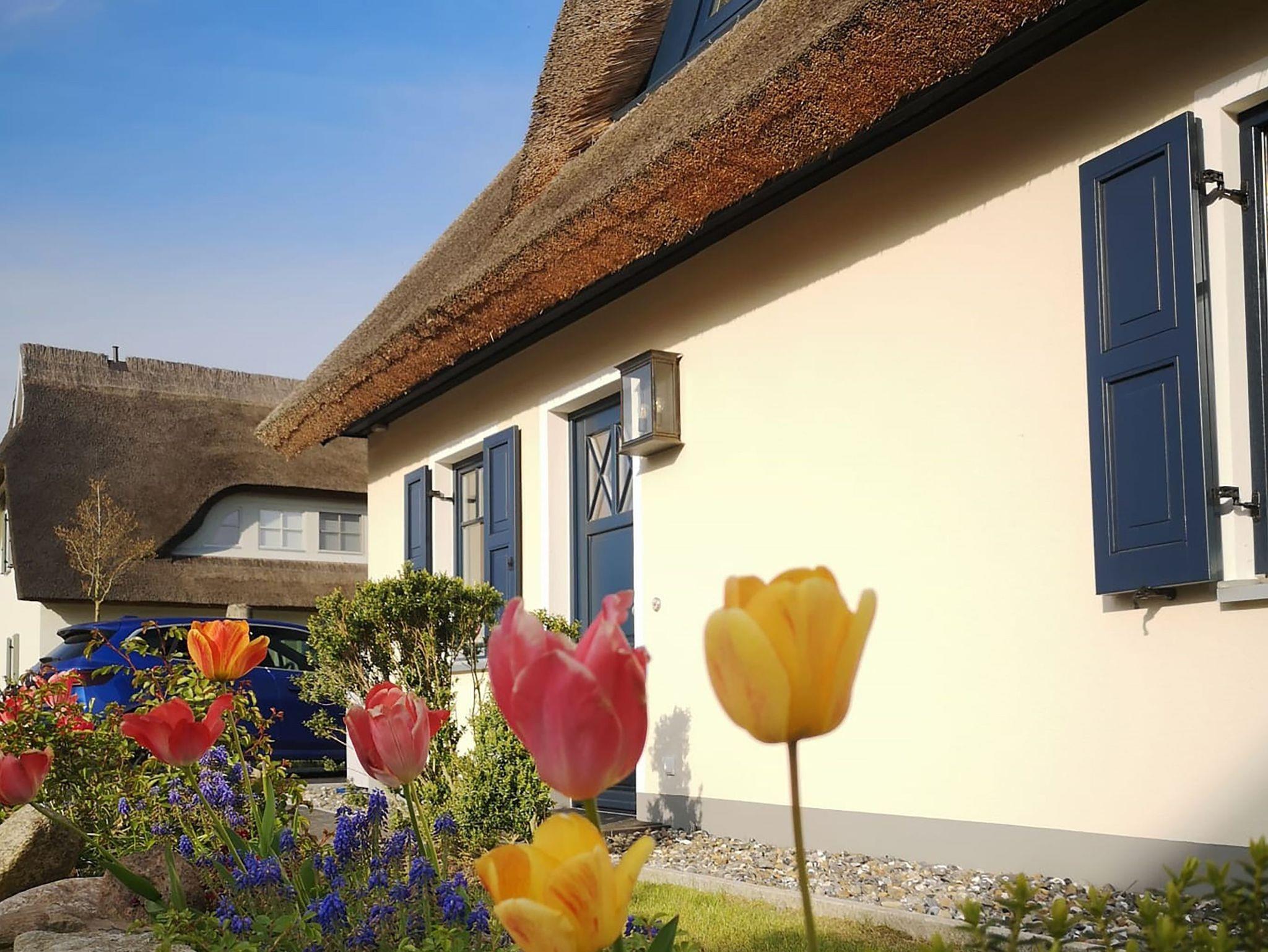 Exklusives Reetdachhaus in Parow mit Sauna, Kamin und Terrasse, nur wenige Schritte vom Wasser entfernt.