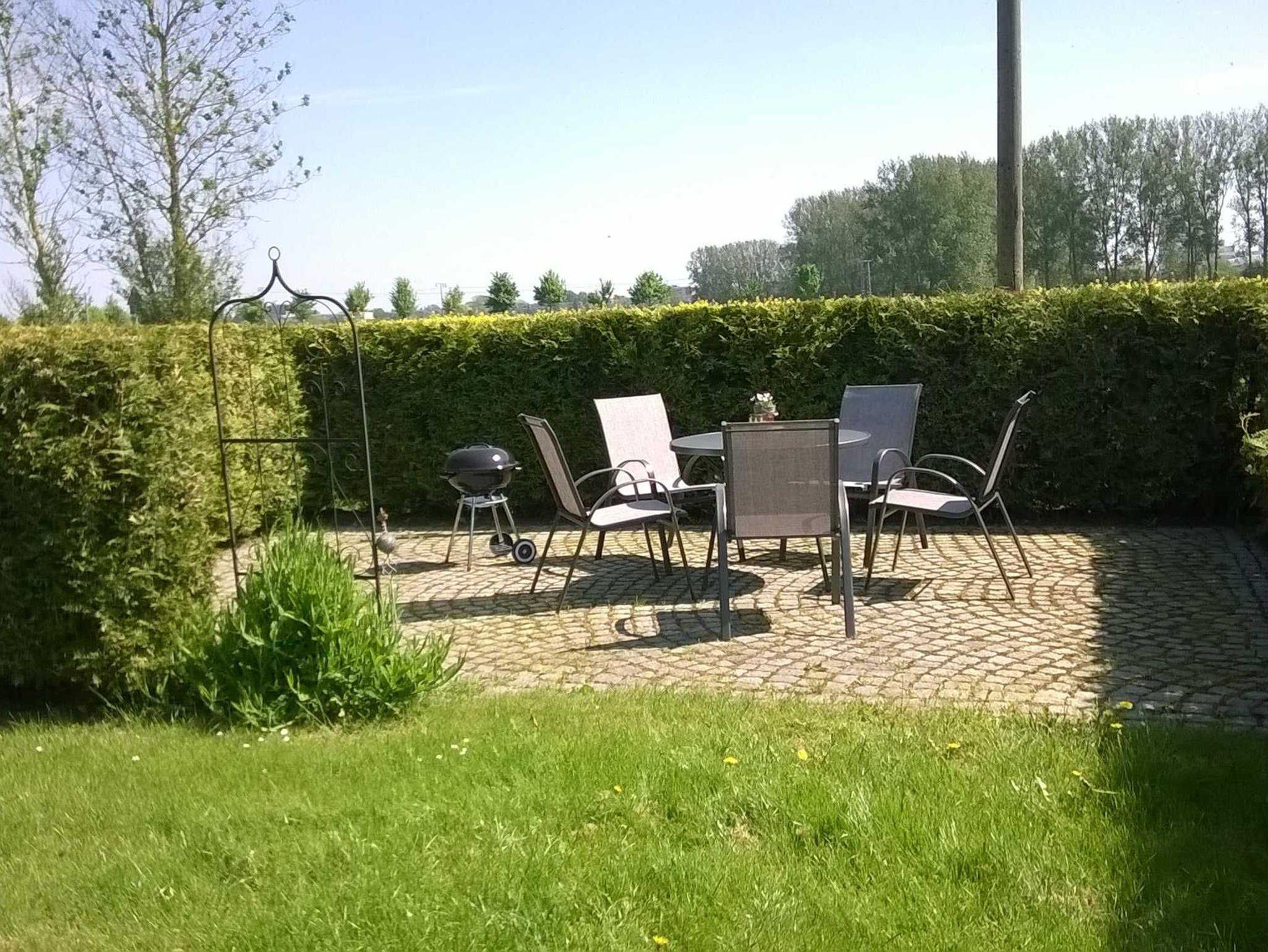 Im Außenbereich stehen ein Grill und Gartenmöbel zur Verfügung.