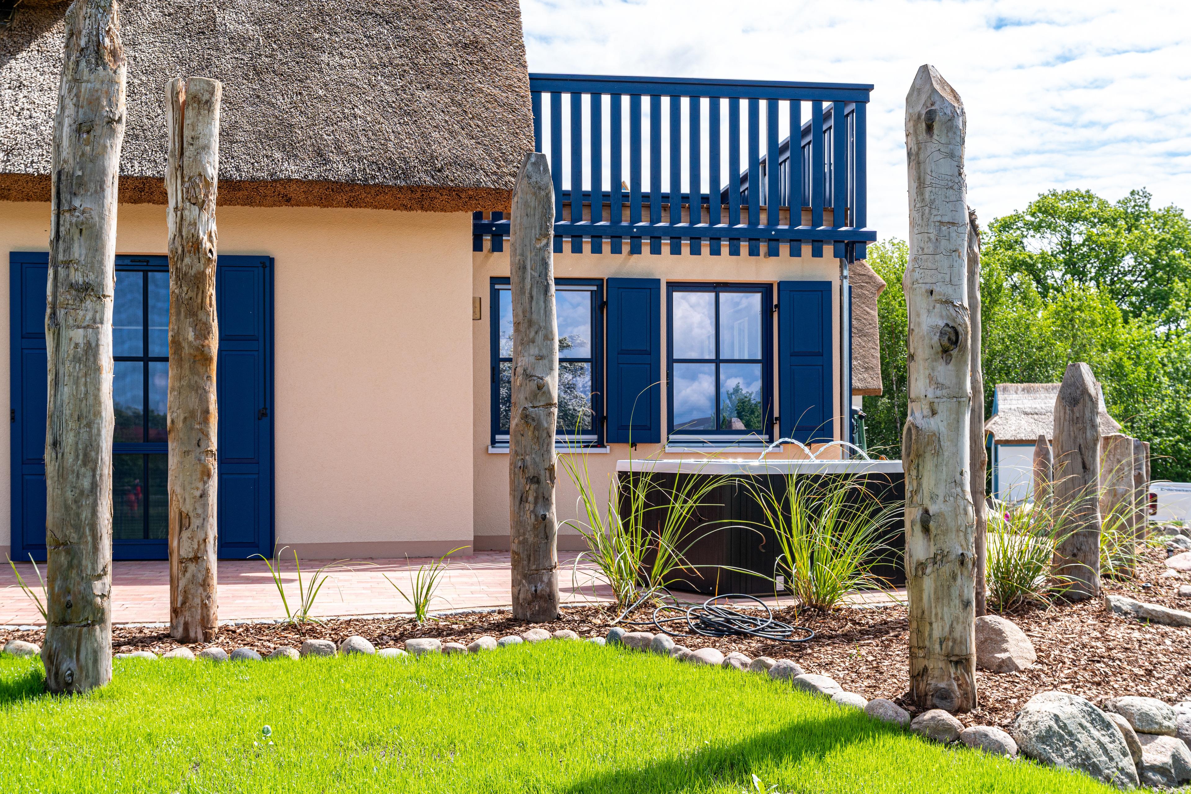 Reetdach-Ferienhaus, optional mit Außenwhirlpool, Sauna, Strandkorb, Kamin, Dachterrasse, Spielbereich für Kind u. Hund, Ladestation für E-Autos