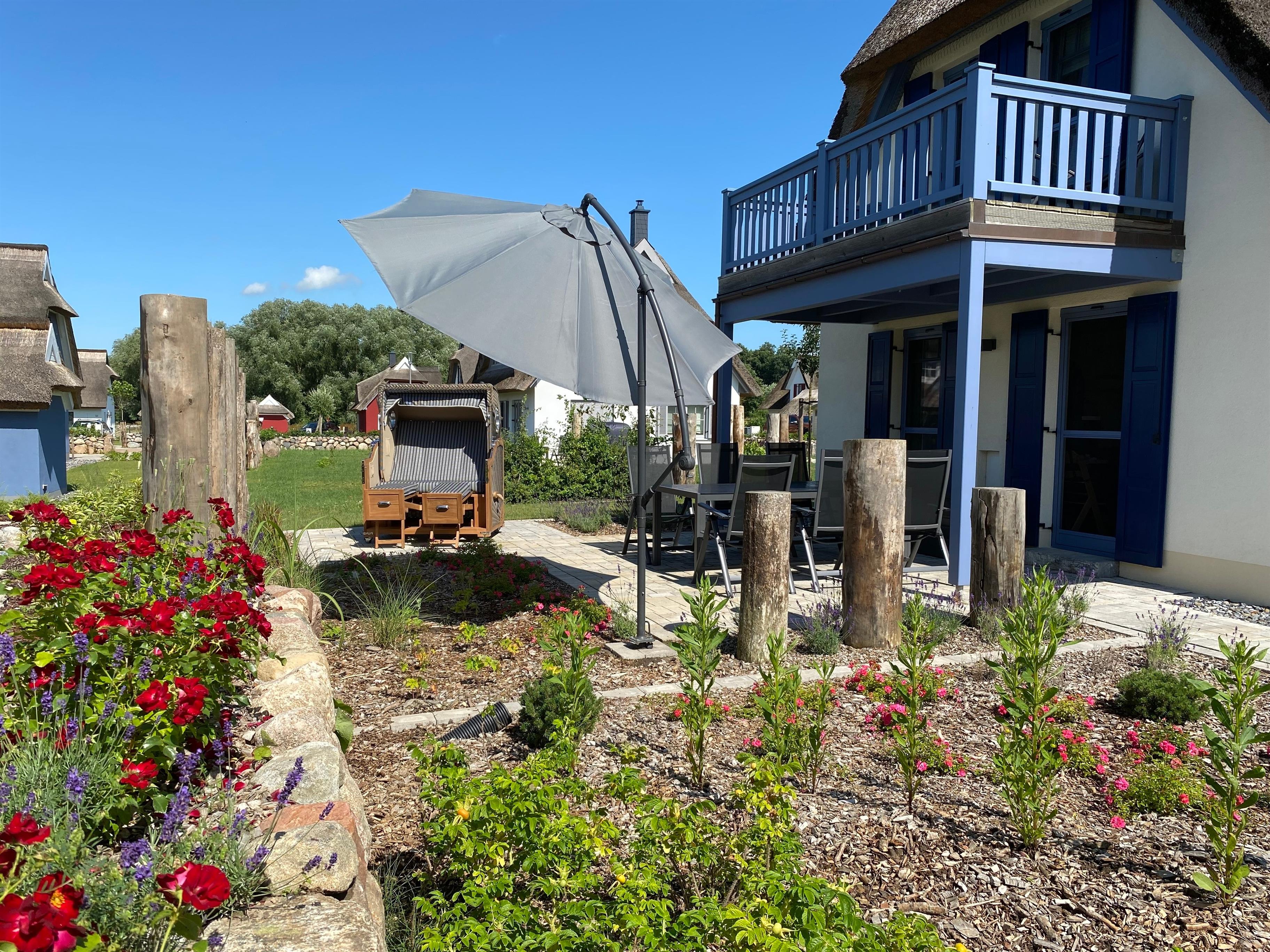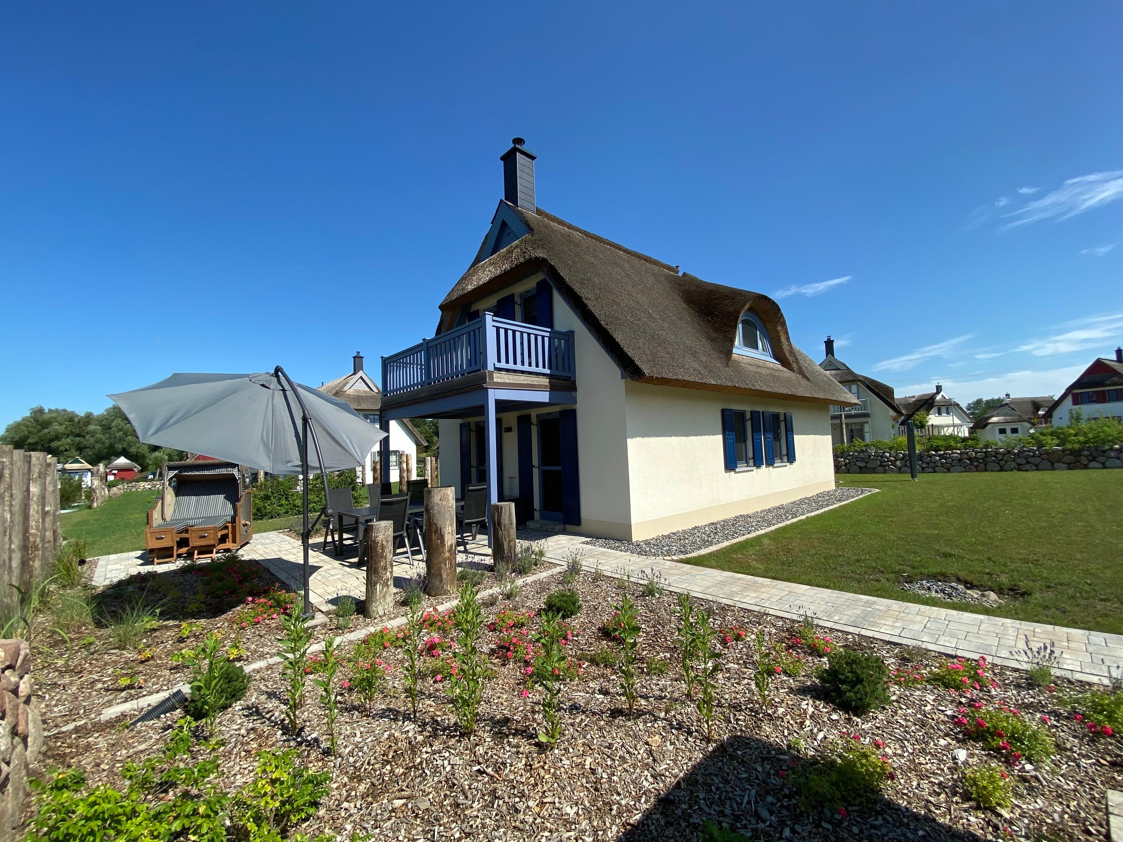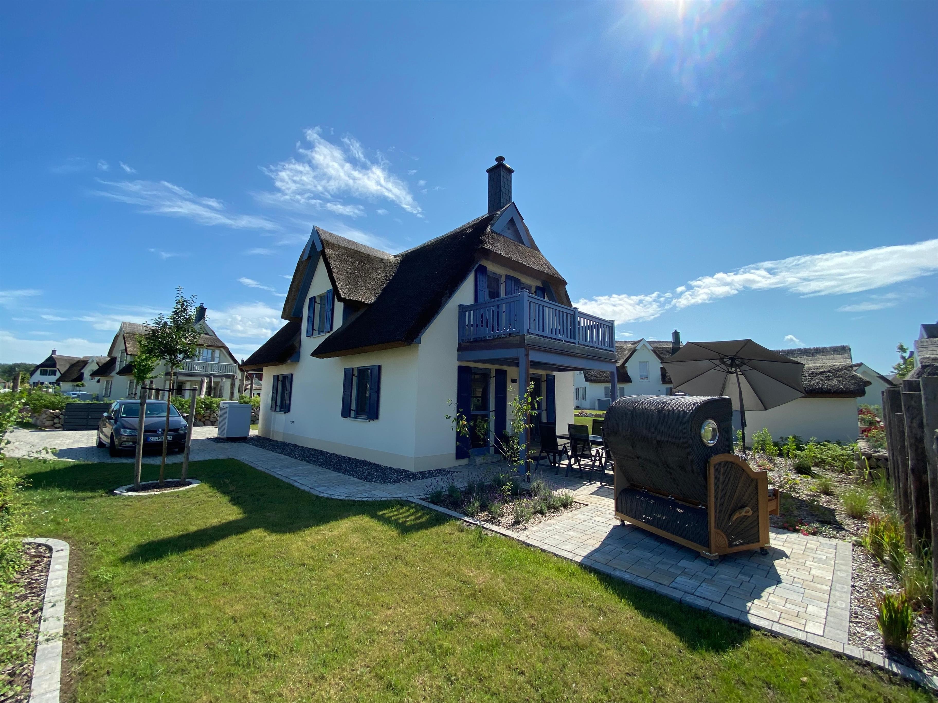 Wunderschönes Reetdach-Ferienhaus “Zeit zum Ankern“ für 1 – 4 (6) Personen + 1 Babybett + optional Schlafcouch (Aufbettung für 2 Personen) mit Sauna, Kamin, Grill, eigener Garten, Terrasse mit Sitzmöbeln und Strandkorb,