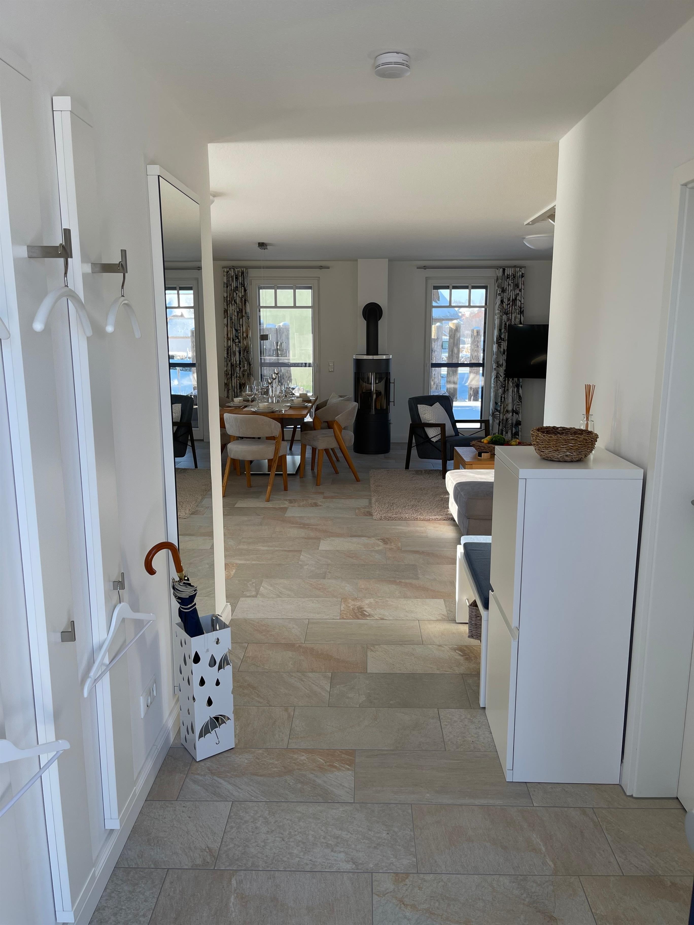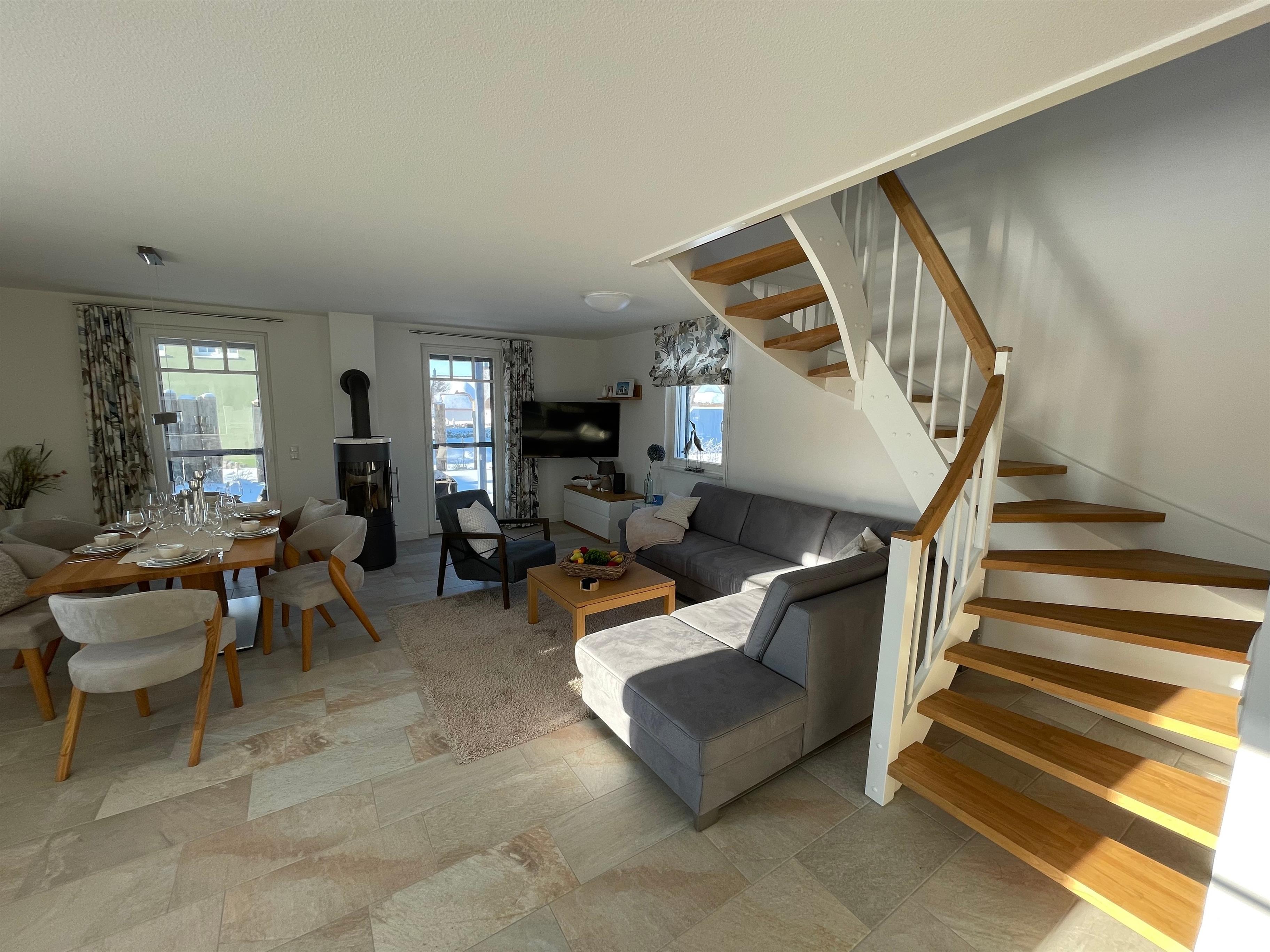 Das 2020 neugebaute, liebevoll eingerichtete Ferienhaus "Zeit zum Ankern" mit traditionellem Reetdach, ausgestattet mit Sauna und Kaminofen ist ein Nichtraucherhaus. Die gehobene Ausstattung mit moderner, geschmackvoller Einrichtung spiegelt sich auch in den 3 Schlafzimmern und 2 Bädern wider. Der kostenlose Internetzugang (W-Lan), Schranksafe, die Fußbodenheizung, Waschmaschine/Trockner, die Terrasse mit Sitzmöbeln und Strandkorb sind ebenso vorhanden wie ein Holzkohlegrill und die 2 Pkw-Stellplätze am Haus. Dieses wunderschöne Ferienhaus ist für 4 Personen und ein Kind bis 5 Jahre geeignet. Ein Kind bis 5 Jahre im vorhandenen Kinderbett frei. Zwei weitere Aufbettungen sind auf Anfrage auf dem ausziehbaren Schlafsofa im Wohnzimmer möglich. Haustiere sind nicht erlaubt. Hier kurz noch ein paar spezielle Details zum Haus. Das Ferienhaus ist sehr kinderfreundlich ausgestattet, wie z. B. mit dem Steckdosenschutz für Kleinkinder, einem Kinderhochstuhl, Fläschchenwärmer etc. Es gibt einen Balkon mit Relaxliegen und eine große Terrasse. Im großen Schlafzimmer stehen ein Doppelbett und das Kinderbett. Die anderen zwei kleinen Schlafzimmer besitzen je ein Einzelbett 90*200 cm und einen Zugang auf den Balkon. Die Küche ist exklusiv ausgestattet, Smart-TVs sind vorhanden und zwei Fahrräder stehen zur Benutzung bereit.