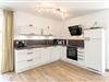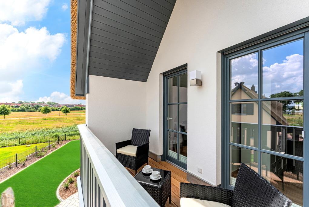 Richtige Urlaubsstimmung kommt auf dem schönen Balkon des Ferienhauses auf. Die gut ausgestattete Küche besitzt unter anderem einen Kühlschrank, einen Herd zum Kochen und sogar eine Spülmaschine.