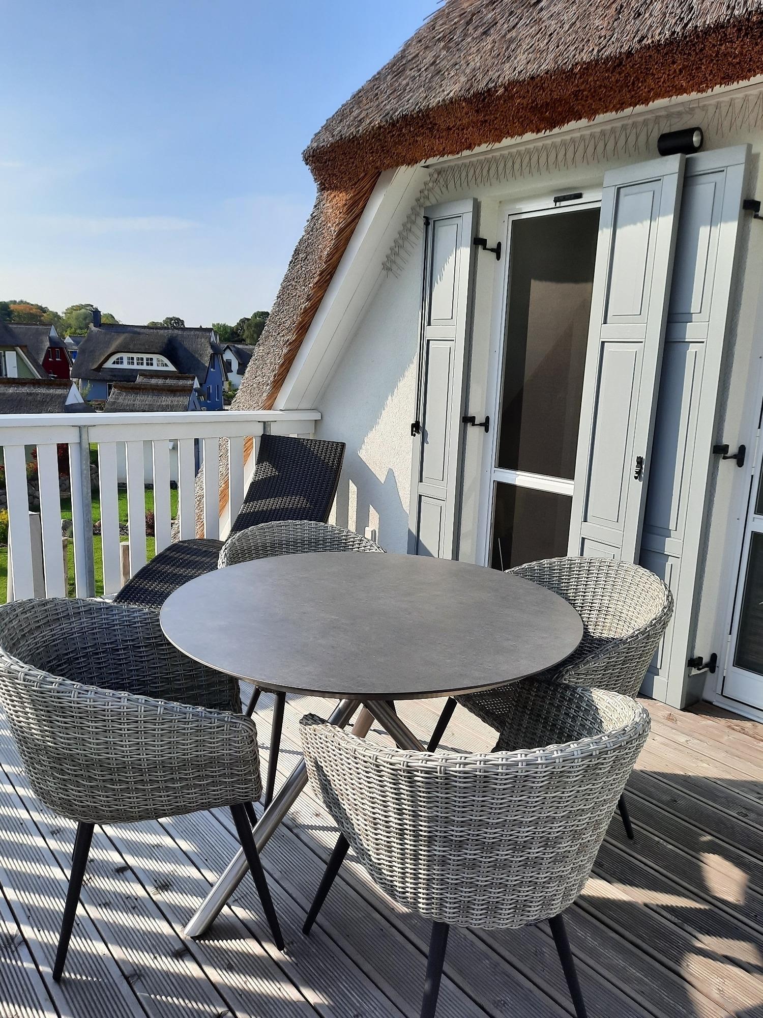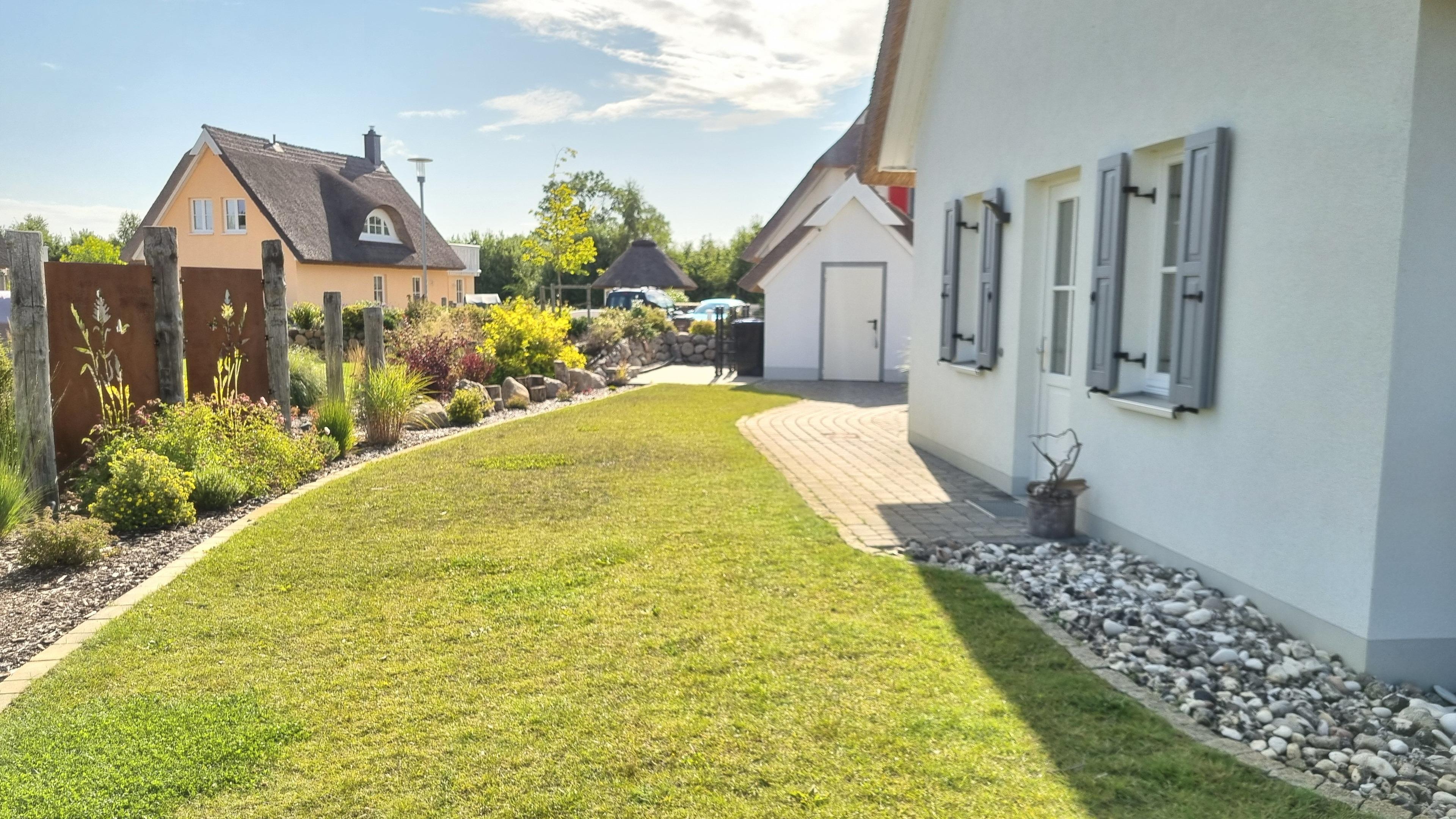 Wunderschönes Reetdach-Ferienhaus in einer liebevoll gestalteten Ferienhaussiedlung mit Sauna, Kaminofen, Balkon mit Sitzmöbel, Holzkohlegrill, schöner Garten mit Terrasse, Strandkorb und Gartenmöbeln, 2 Schlafzimmer, max. 4 Personen, schöner Wohn- Essbereich, 2 Bäder, Fußbodenheizung, gehobene Ausstattung mit moderner, geschmackvoller Einrichtung, HiFi-System, W-Lan, Waschtrockner, PKW-Stellplätze am Haus