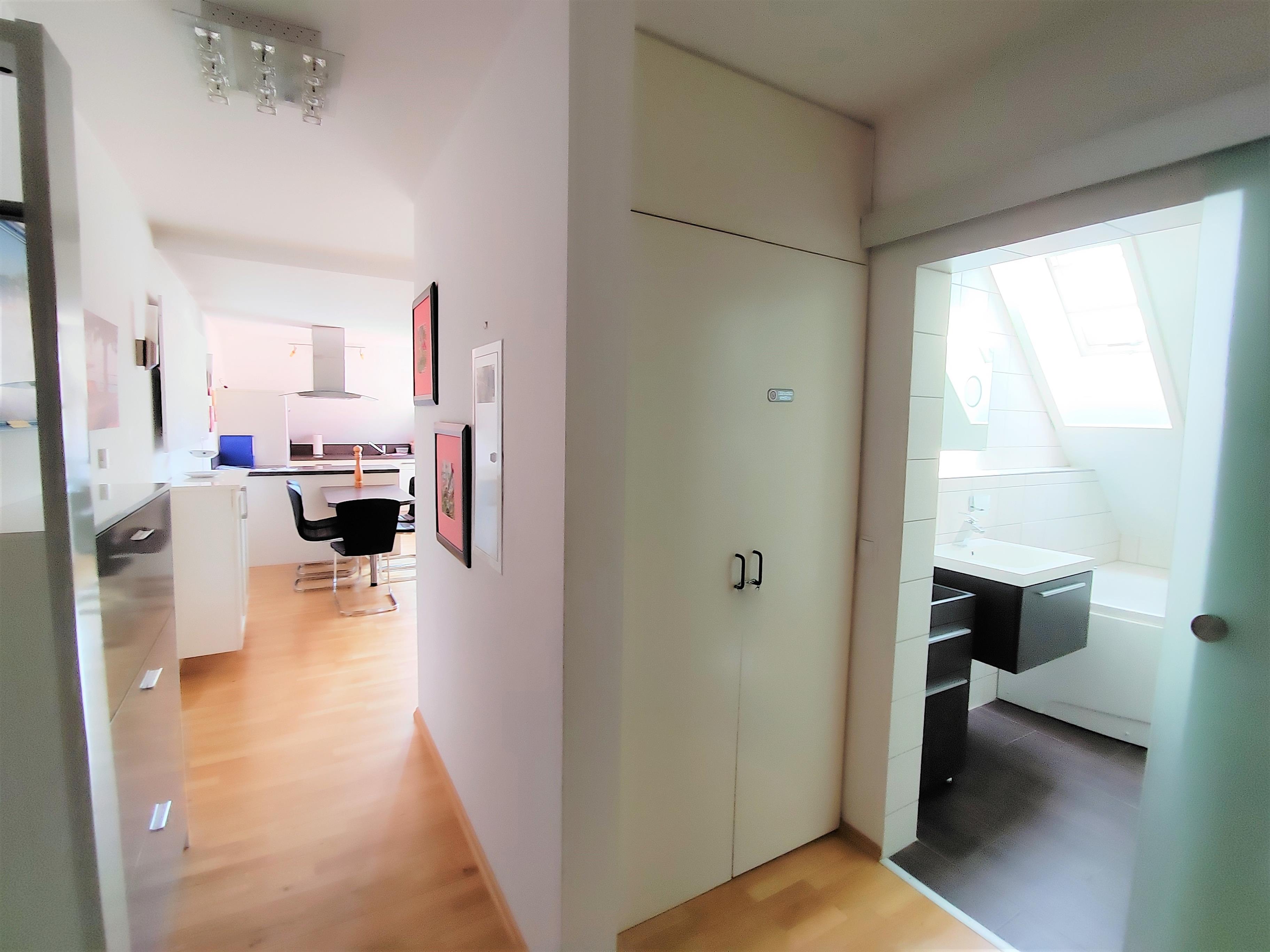 Komplett ausgestattete Wohnung mit einem separaten Schlafzimmer mit Doppelbett. Im Wohnzimmer befindet sich eine Schlafcouch für weitere 2 Personen. Das neu renovierte Bad verfügt über Dusche, Whirlpool-Badewanne und WC. Die zum Wohnraum offene Küche ist voll ausgestattet mit einem Cerankochfeld, Kühl-Gefrier-Kombination, Kaffeemaschine, Wasserkocher, Toaster und Backofen. Auf dem sonnigen Balkon können Sie Ihr Frühstück oder Ihr Glas Bodenseewein am Abend genießen.