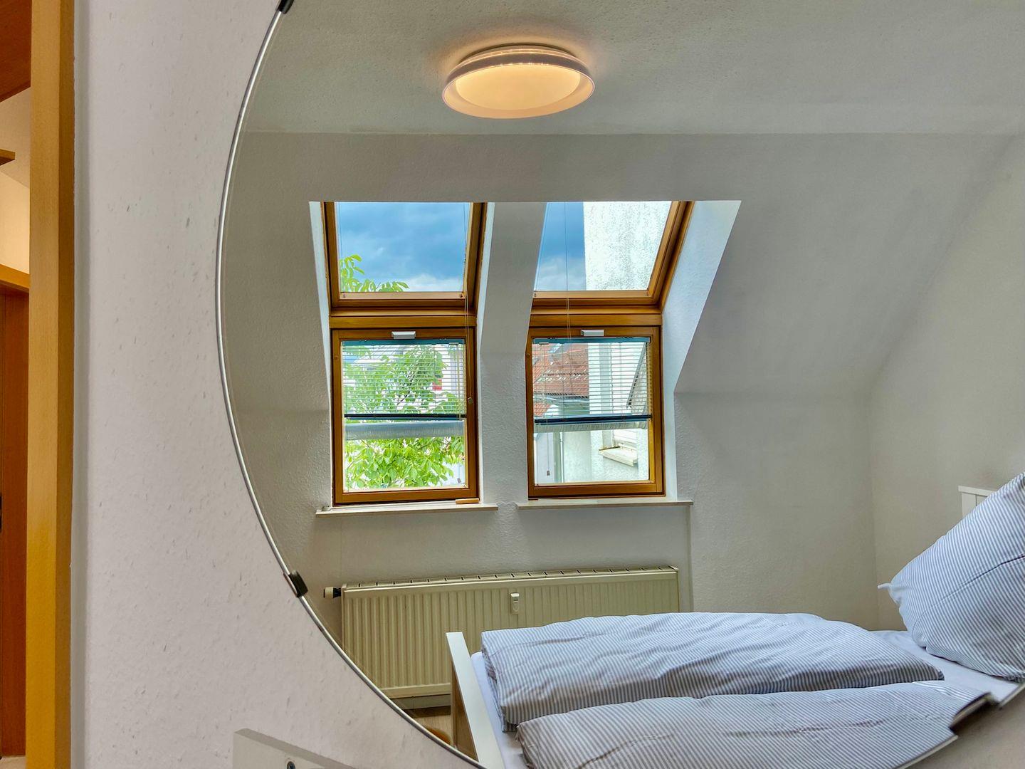 Das freundliche Schlafzimmer ist mit einem Doppelbett (160 x 200 cm) ausgestattet, ein Babybett und Kinderhochstuhl befinden sich ebenfalls in der Wohnung und können bei Bedarf zur Verfügung gestellt werden.