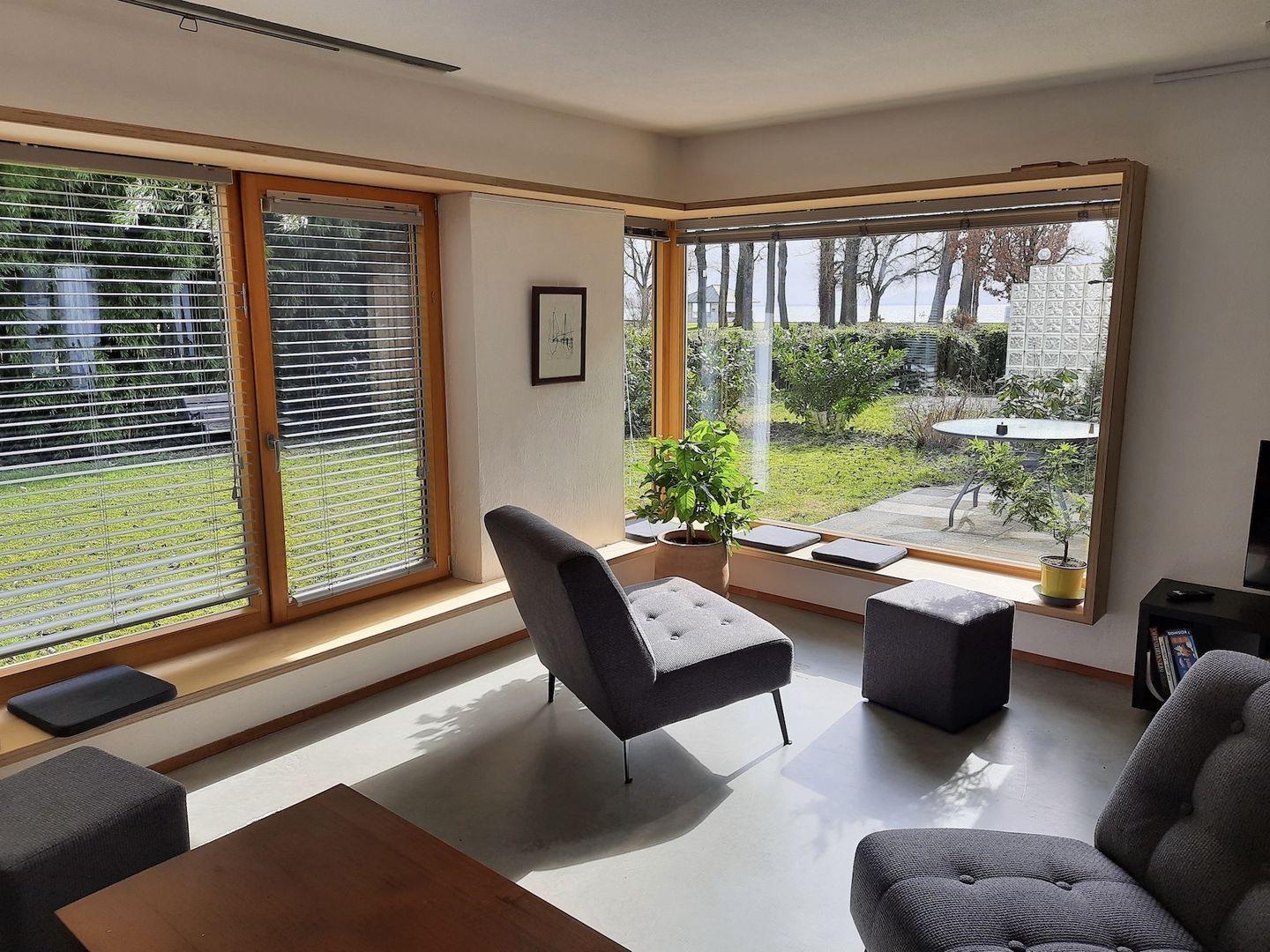 Umgeben von altem Baumbestand findet sich dieser idyllische Rückzugsort in Kressbronn. Die neu renovierte, ebenerdige 3-Zimmer Nichtraucher-Wohnung bietet ausreichend Platz für Familien oder befreundete Paare. Das lichtdurchflutete Urlaubsdomizil befindet sich in unmittelbarer Seenähe, aber abseits des touristischen Trubels in den Sommermonaten. Wenige Gehminuten trennen Sie vom Bodensee, der denkmalgeschützten Bodan-Werftanlage und der Bodan Promenade, die gastronomische und kulturelle Highlights bietet.