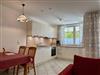 Die Wohnung verfügt über ein separates Schlafzimmer mit komfortablem Doppelbett und großem Kleiderschrank, ein modernes Duschbad sowie einen offenen Wohn- und Essbereich mit Schlafsofa, Fernseher und Radio. Bodentiefe Fenster sorgen für viel Licht und führen direkt auf die große Terrasse, die zum Entspannen einlädt.