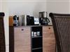Da wir keinen Frühstücksservice anbieten, steht Ihnen eine separate Gemeinschaftsküche mit Sitz- & Essmöglichkeiten zur Verfügung. Ausgestattet ist die Küche mit Herd, Kühlschrank, Kaffeemaschine, Wasserkocher und Toaster. Geschirr, Besteck, Gläser und Töpfe sind ebenso vorhanden.