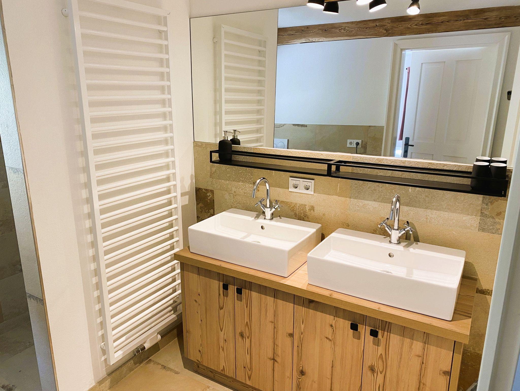 Diese stilvolle Ferienwohnung mit ca. 137 m² Wohnfläche erstreckt sich ebenfalls über zwei Ebenen und bietet großzügigen Raum für einen entspannten Aufenthalt. Sie befindet sich auf einem liebevoll revitalisierten ehemaligen Bauernhof, der umfassend kernsaniert und energetisch auf den neuesten Stand gebracht wurde. Traditionelle Bausubstanz trifft hier auf modernen Wohnkomfort.