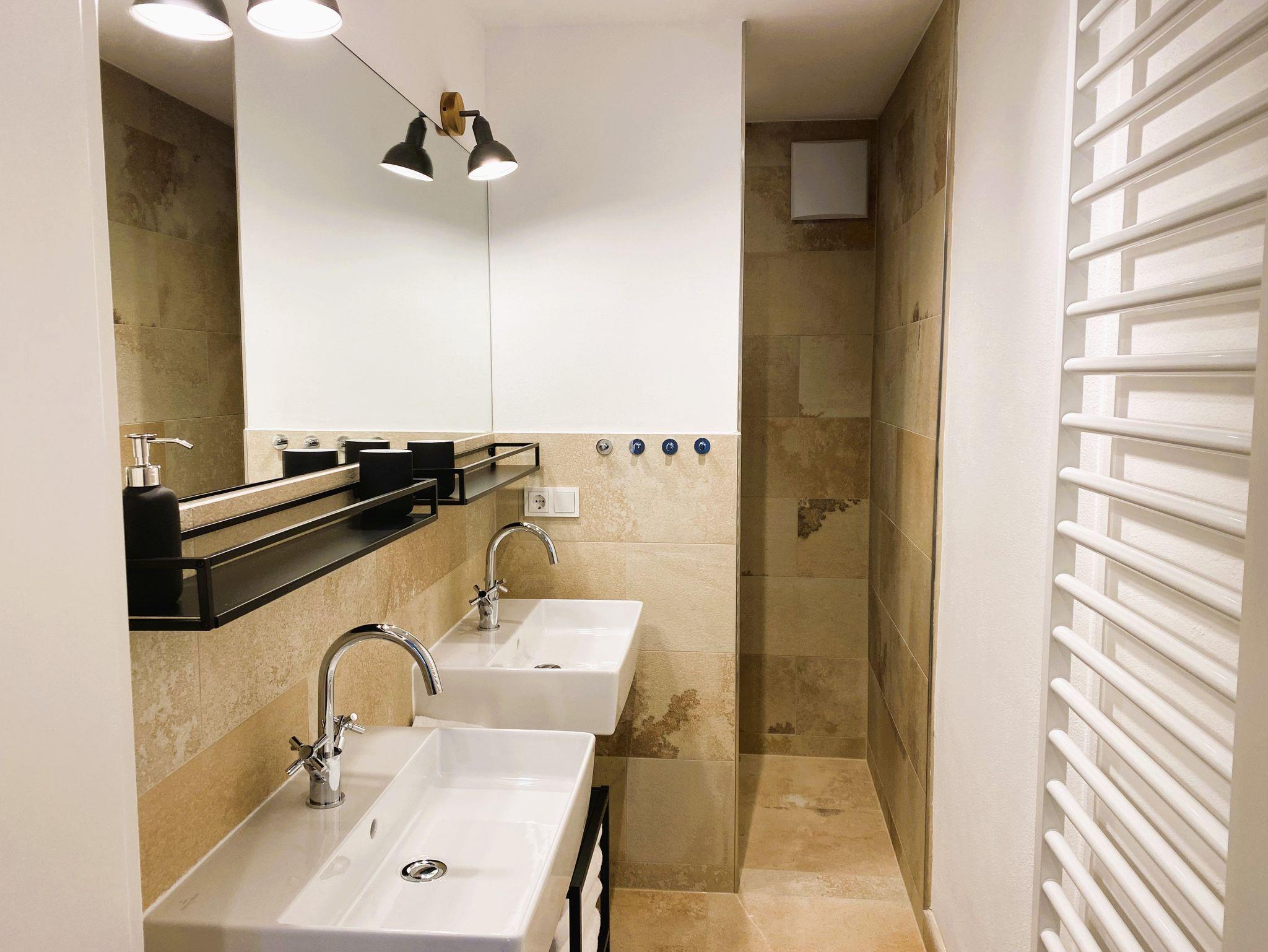 Die modern ausgestattete Einbauküche bietet alles, was Sie für die Zubereitung Ihrer Lieblingsgerichte benötigen. Das stilvolle Badezimmer überzeugt mit einer bodengleichen Dusche und einem praktischen Handtuchheizkörper, der zusätzlichen Komfort bietet.