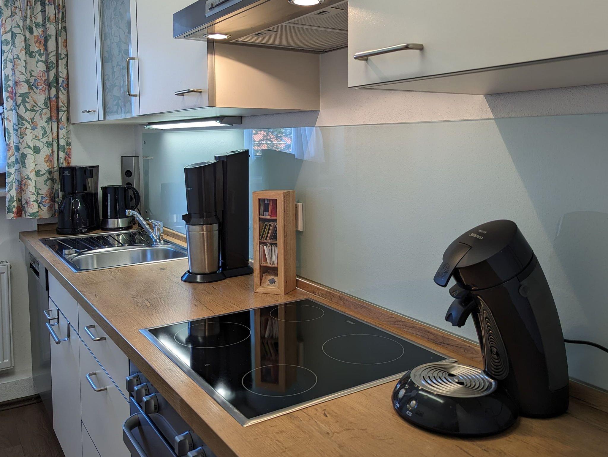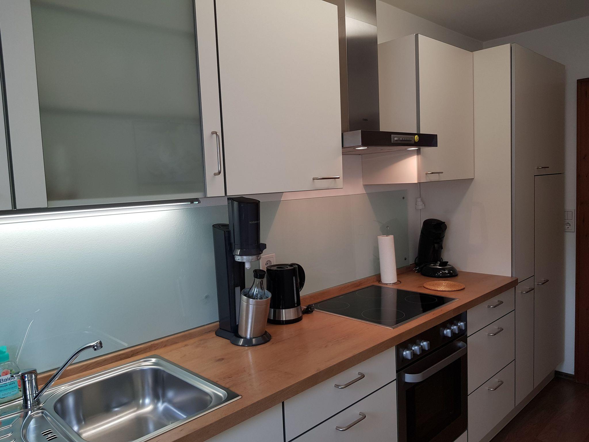 Beide Schlafzimmer sind ebenfalls mit einem SAT-Flachbild-TVs ausgestattet. Die Küche ist komplett ausgestattet und enthält folgende Elektrogeräte: Kühlschrank mit separatem Gefrierschrank, Cerankochfeld und Heißluftbackofen, Dunstabzughaube, Spülmaschine, Kaffeemaschine, Kaffee-Pad-Maschine (Senseo), Wasserkocher, Toaster, Eierkocher, Handrührgerät und Elektromesser. Bei Bedarf steht eine Microwelle zur Verfügung. Die Schränke beinhalten genügend Geschirr, Gläser, Töpfe, Pfannen und diverse Kochutensilien. Geschirr- und Spültücher sowie Spülmittel sind ebenfalls vorhanden. Der SODA-STREAMER rundet die Kücheneinrichtung ab. Kreuth ? Scharling hat ein vorzügliches Quellwasser, so dass getrost auf gekauftes Mineralwasser verzichtet werden kann. Damit kommen wir auch wieder ein Stück mehr dem Nachhaltigkeitsgedanken entgegen. Das Badezimmer ist mit einer großen barrierefreien Dusche 1 x 1,20 m, einem WC sowie einem Waschbecken mit Spiegel und einem Badezimmerschrank ausgestattet. Im Badezimmerschrank befinden sich ausreichend Hand- und Duschtücher, Duschvorleger, ein Haarfön und ein Kosmetikspiegel. Zusätzlich steht noch ein separates WC zur Verfügung. Ein schnelles W-LAN ist vorhanden. Unser Haus wird als Nichtraucherhaus geführt. Damit auch Allergiker die Wohnung buchen können, haben wir uns dazu entschieden keine Haustiere aufzunehmen. Zum Relaxen steht Ihnen eine Liegewiese mit herrlichem Panoramablick zum Hirschberg, den Ringberg mit dem Ringbergschloss und den Wallberg zur Verfügung. Für 2 Fahrräder oder Ihre Skiausrüstung sind Abstellmöglichkeiten vorhanden. Ein kostenloser Parkplatz für Ihr Fahrzeug befindet sich auf unserem Grundstück. Der für Sie kostenlose Linien-Bus hält ca. 150 m vom Haus entfernt. Unser Haus liegt in unmittelbarer Nähe zum Hirschberg-Lift und zahlreichen Langlaufloipen.