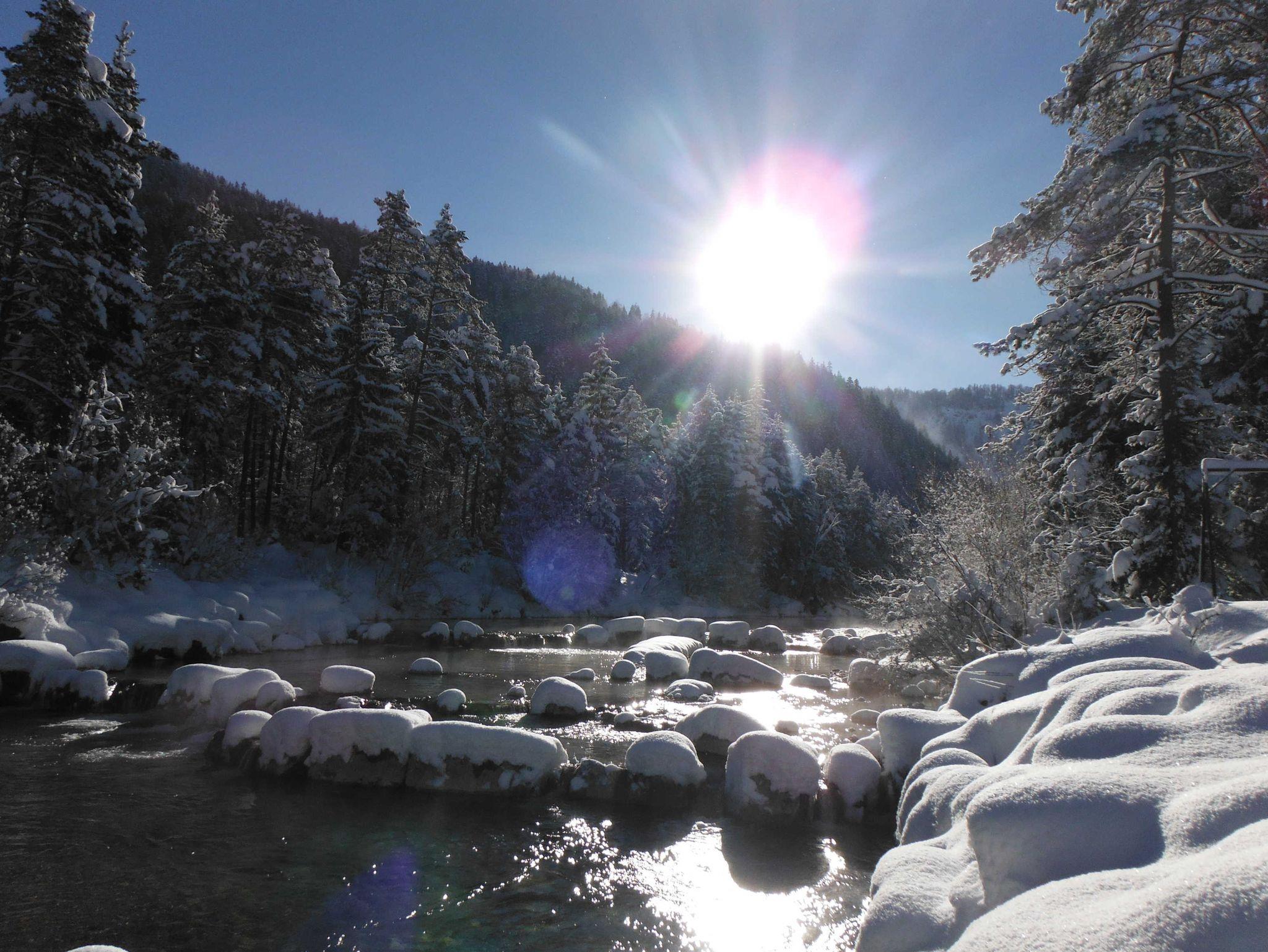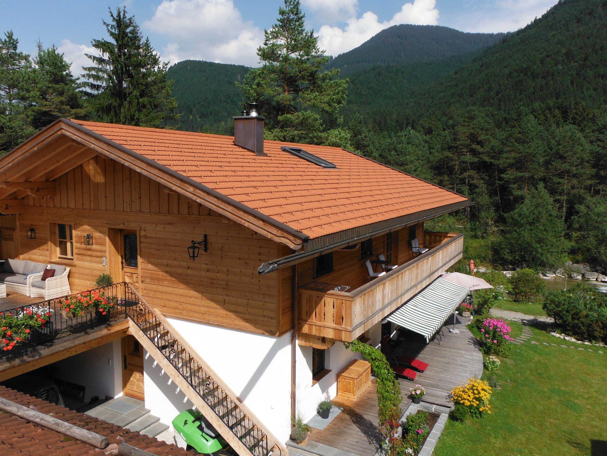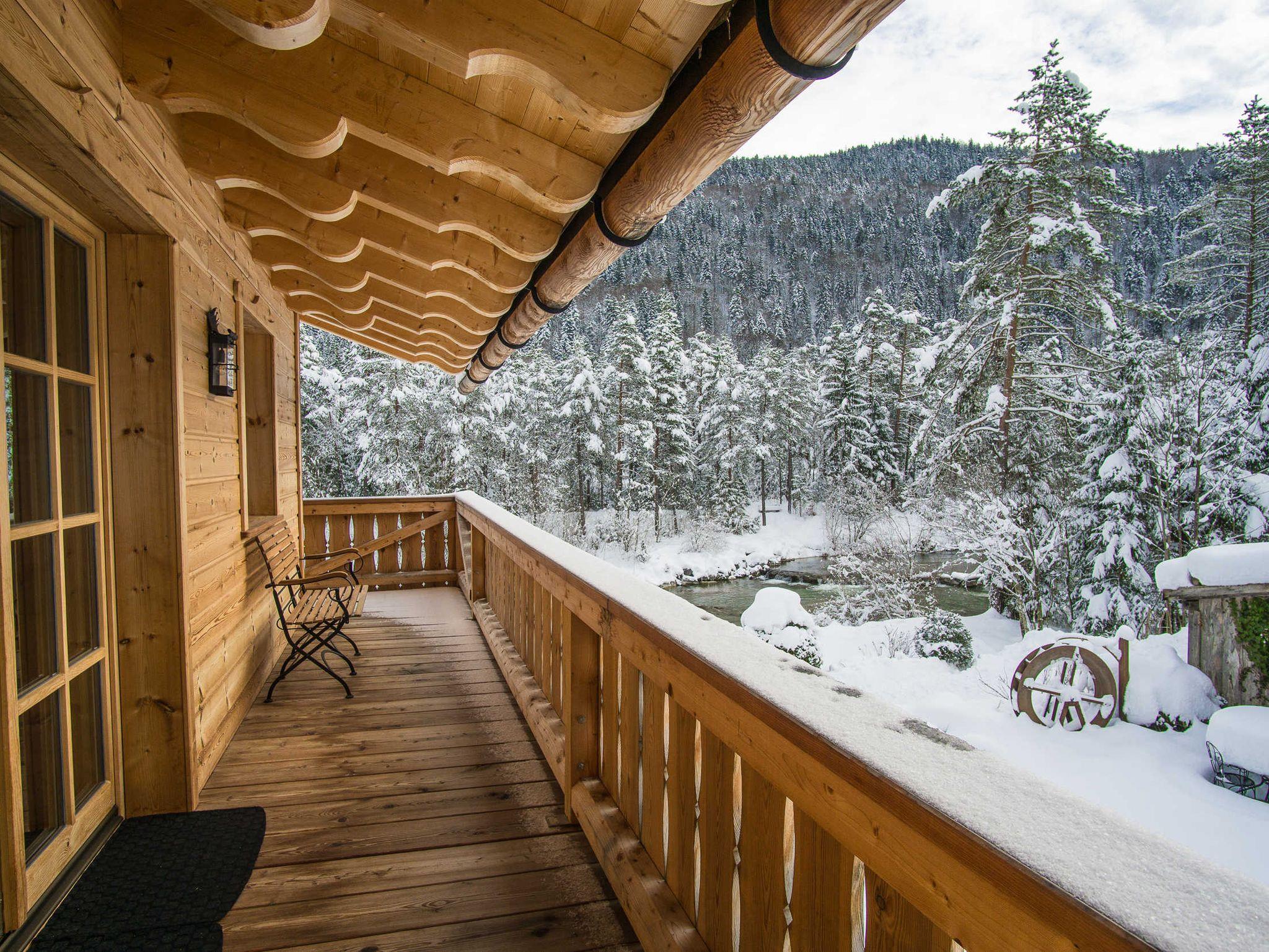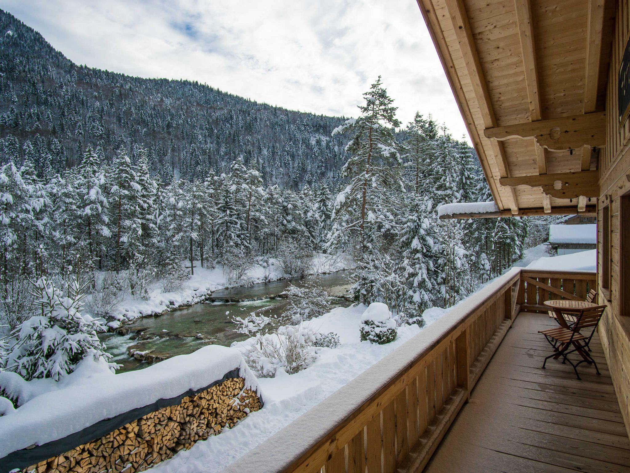 Das Massivholz-Haus liegt im Naturschutzgebiet der Weißachauen und direkt am schönen Weißach-Fluss.