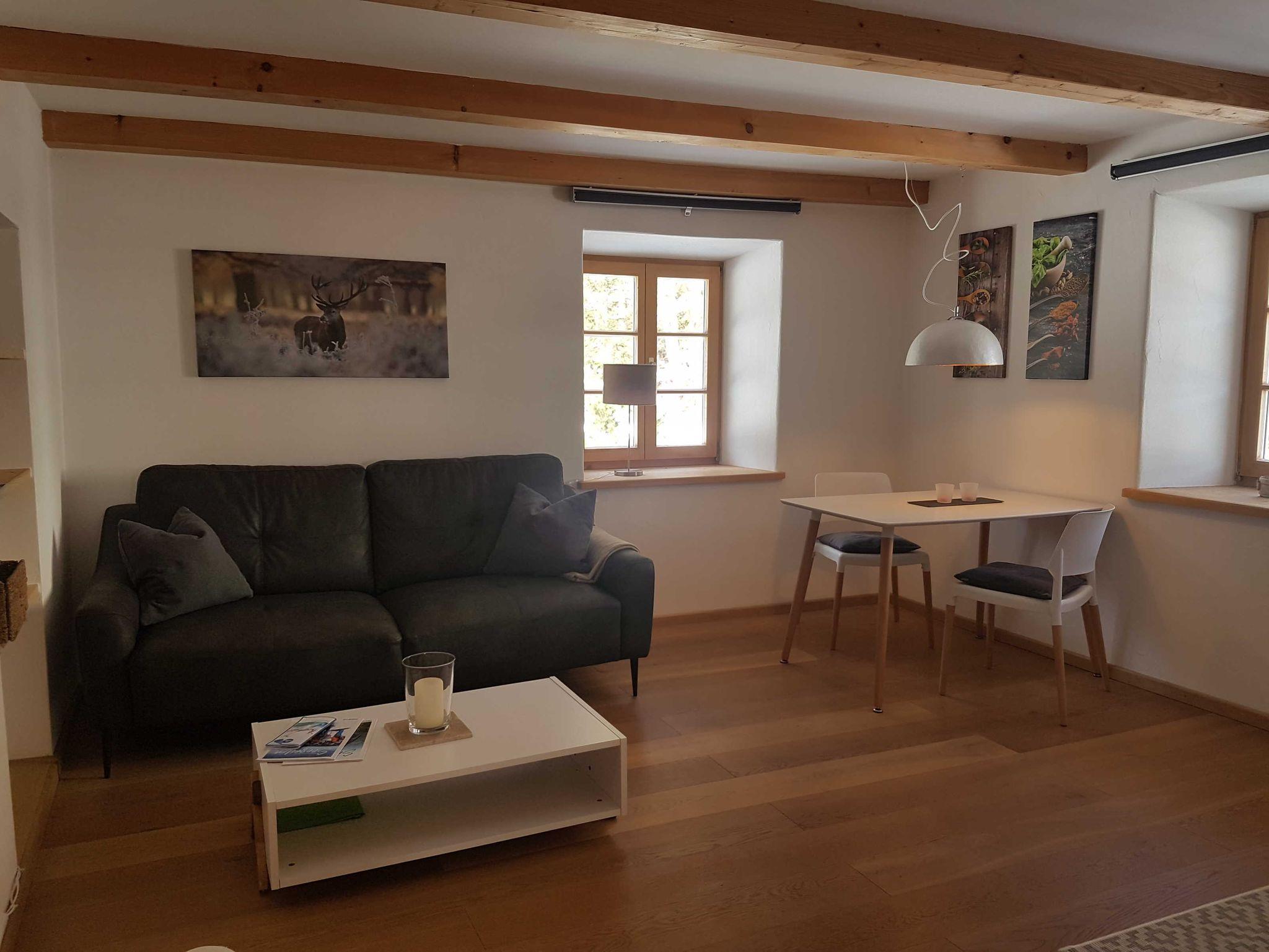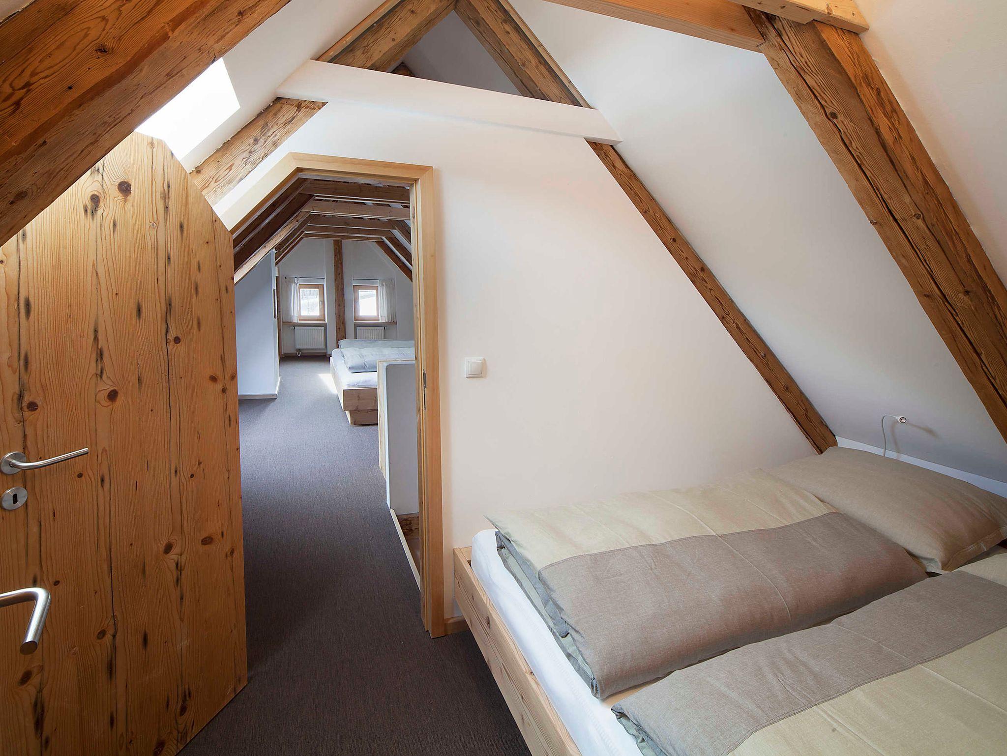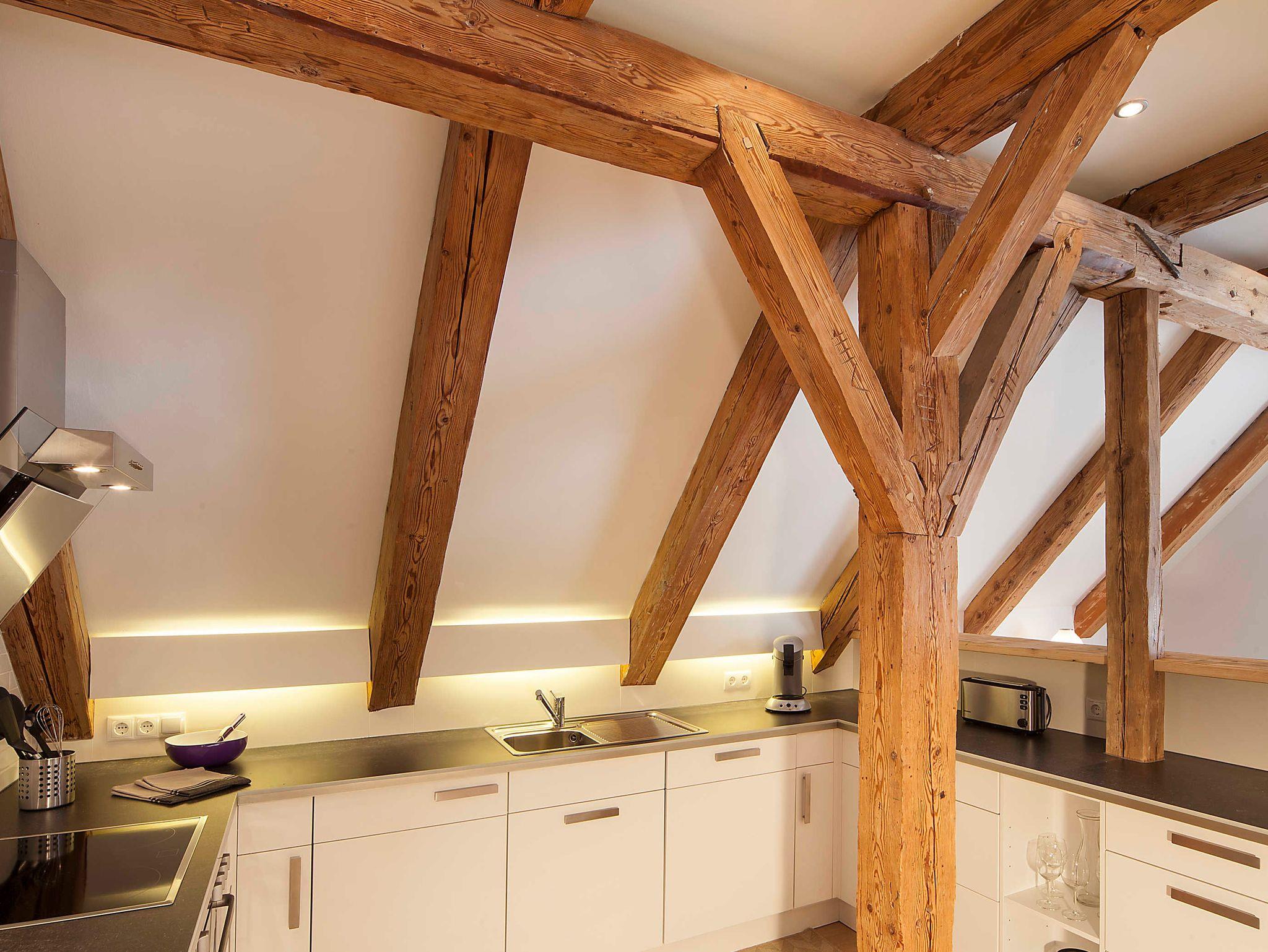 Ländlich moderne Ferienwohnung, mit gehobener Ausstattung. Eichendielenboden, hohe Räume mit sichtbarem alten Dachstuhl. Bad mit hochwertigem Naturstein. LED-backlight TV 40', Musikanlage, Filterkaffeemaschine. Gemütliche Schlafzimmer unter dem Giebel über freikragende Holztreppe zu erreichen, Maisonettewohnung. Doppelbett 1,80 x 2.00 m - im zweiten Schlafraum 1,60 x 2,00 m. Der Südbalkon mit Deckchair lädt ein zum Sonne tanken und verweilen.
