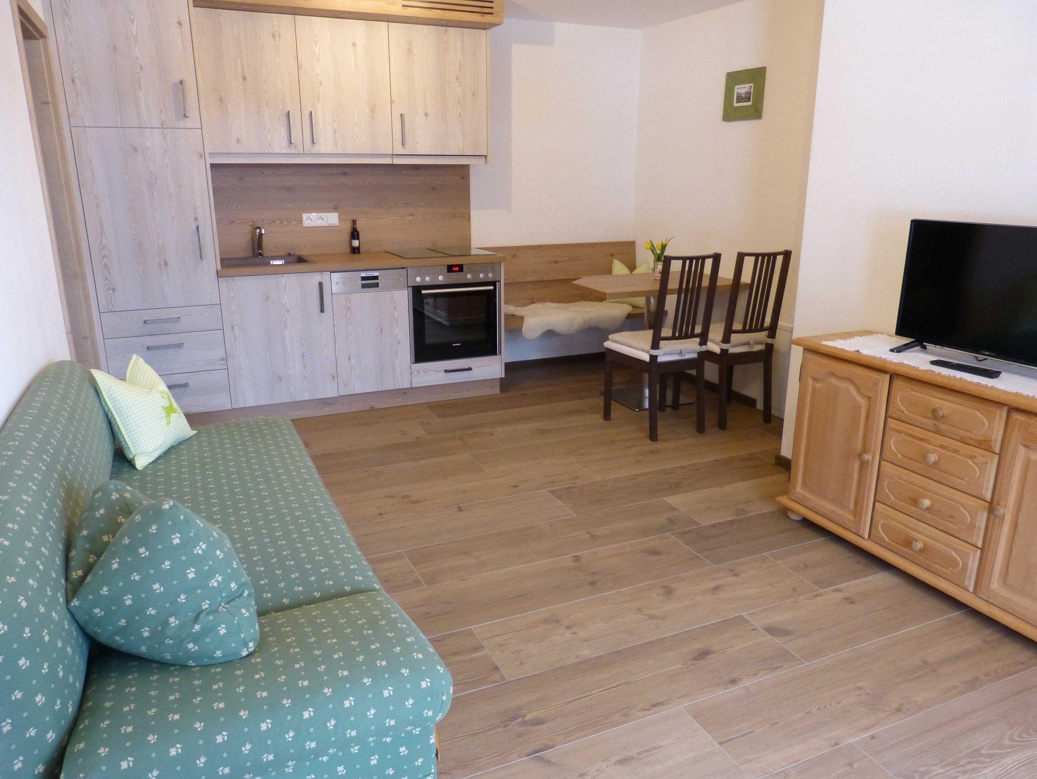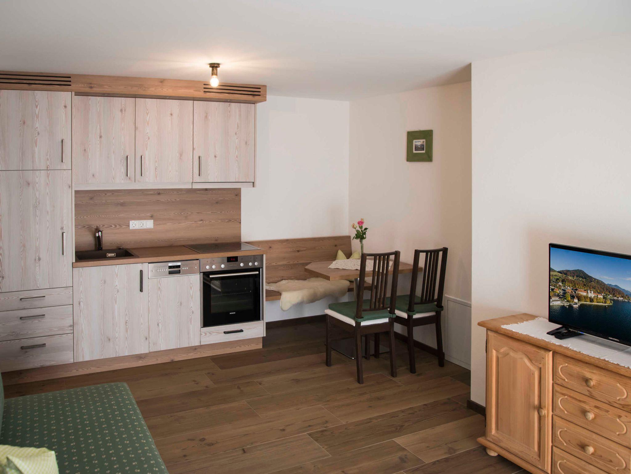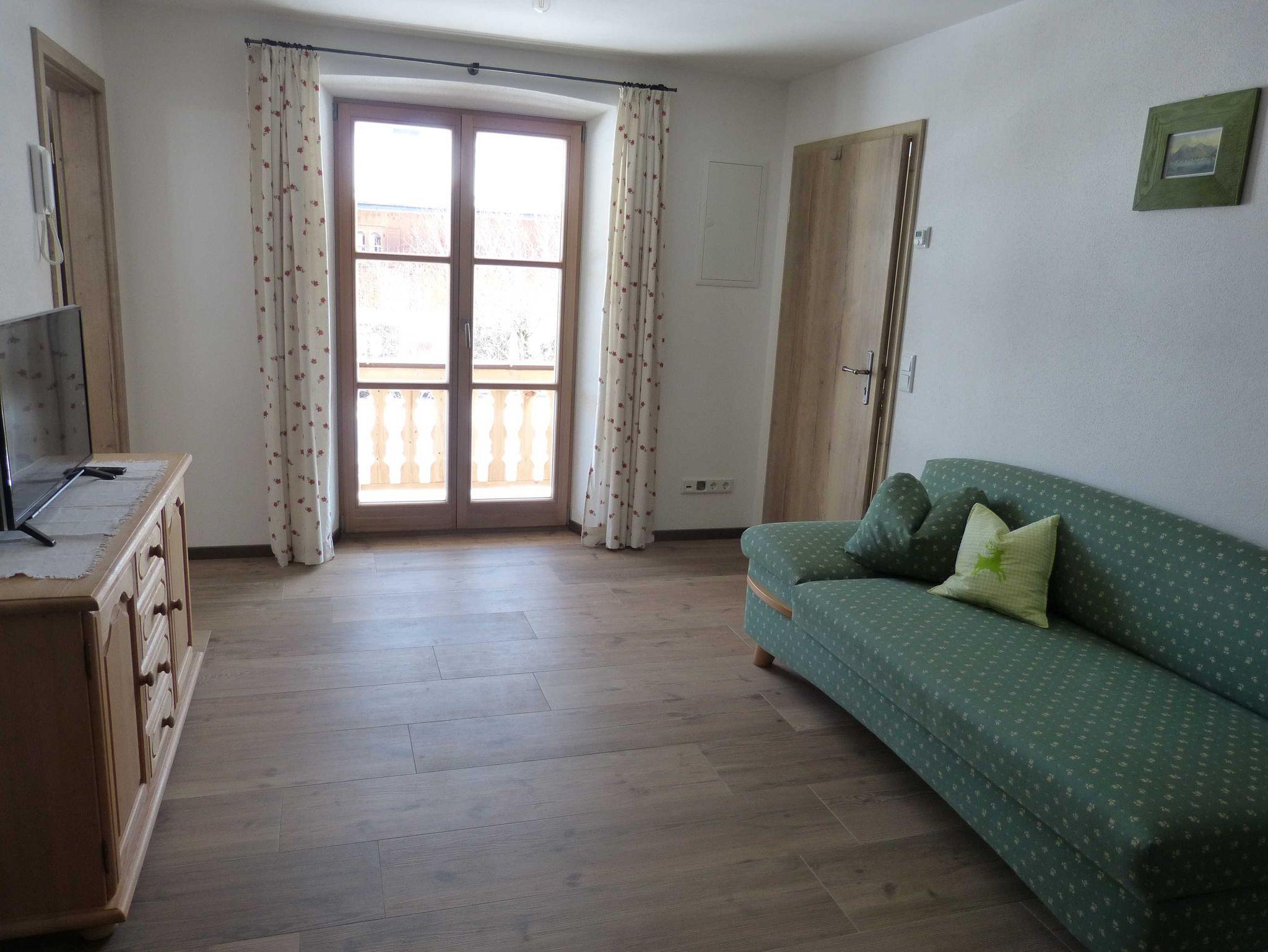 Unsere 36qm-Wohnung “Resi” im Obergeschoss ist 2017 neu erbaut und bietet Raum für 2 Personen und Kind. Sie besteht aus Wohnzimmer mit Küchenzeile und SAT TV, Schlafzimmer, Bad/ WC und hat einen wunderschönen Ostbalkon mit Blick auf den Wallberg.