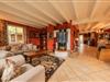 Wohnzimmer: Mit gemütlicher Sitzgarnitur, Kamin und TV-Flatscreen