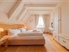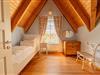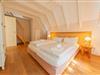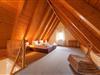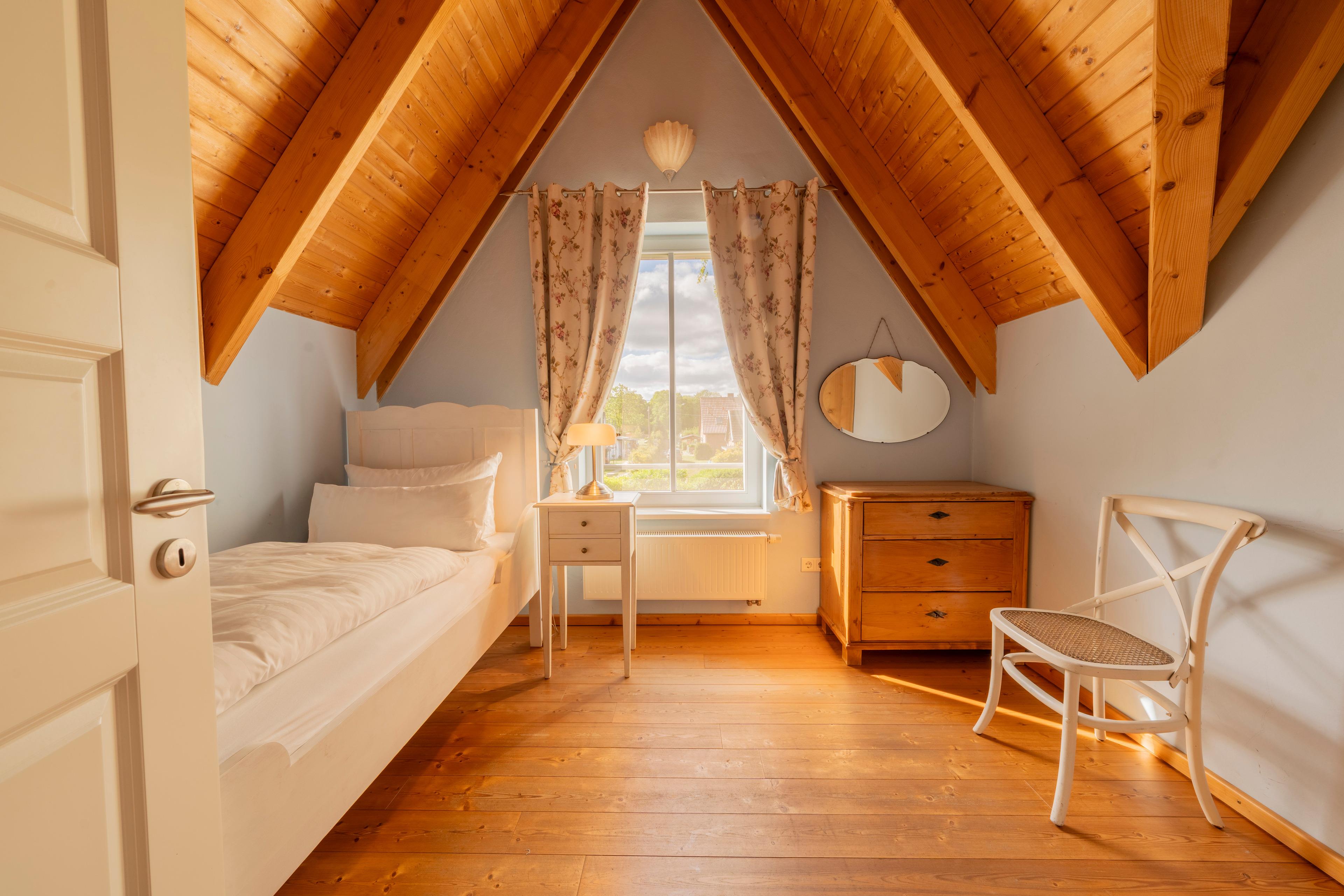 Spitzboden: Über ein Schlafzimmer über eine Treppe erreichbar (nicht barrierefrei), mit Doppelbett und Schlafcouch – ideal für zusätzliche Gäste