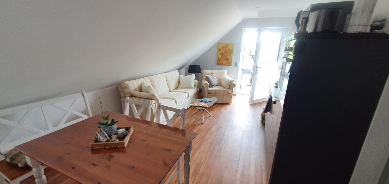 Im Wohn-und Essbereich gibt es eine Küche, ausgestattet mit Kühlschrank+ Gefrierfach, Geschirrspüler und Ceran-Kochfeld. Essecke, Couch+ Sessel und TV .