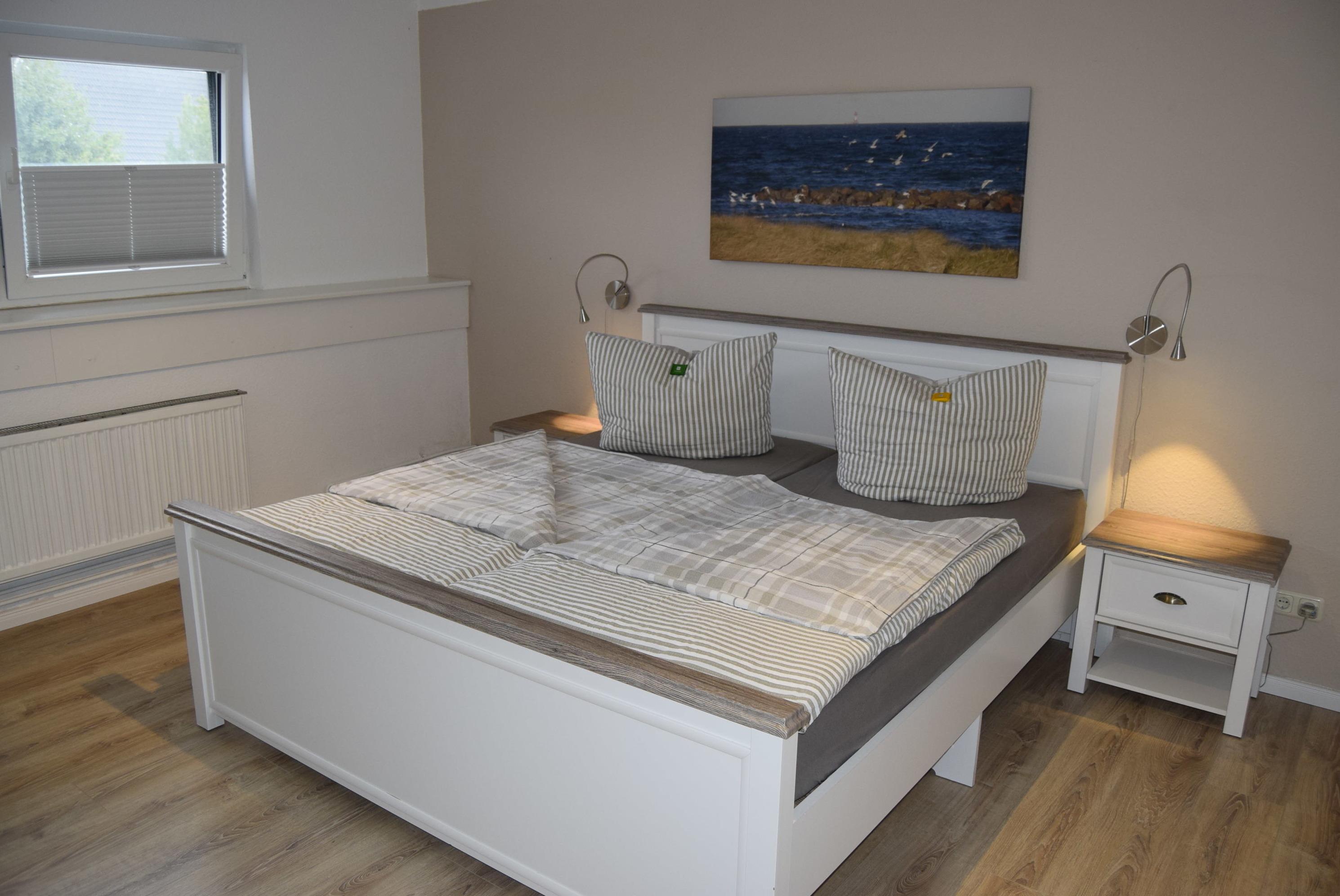 Es stehen Ihnen 2 große Schlafzimmer mit jeweils einem Doppelbett (180 x 200) sowie 2 Einzelbetten (90 x 200) zur Verfügung.