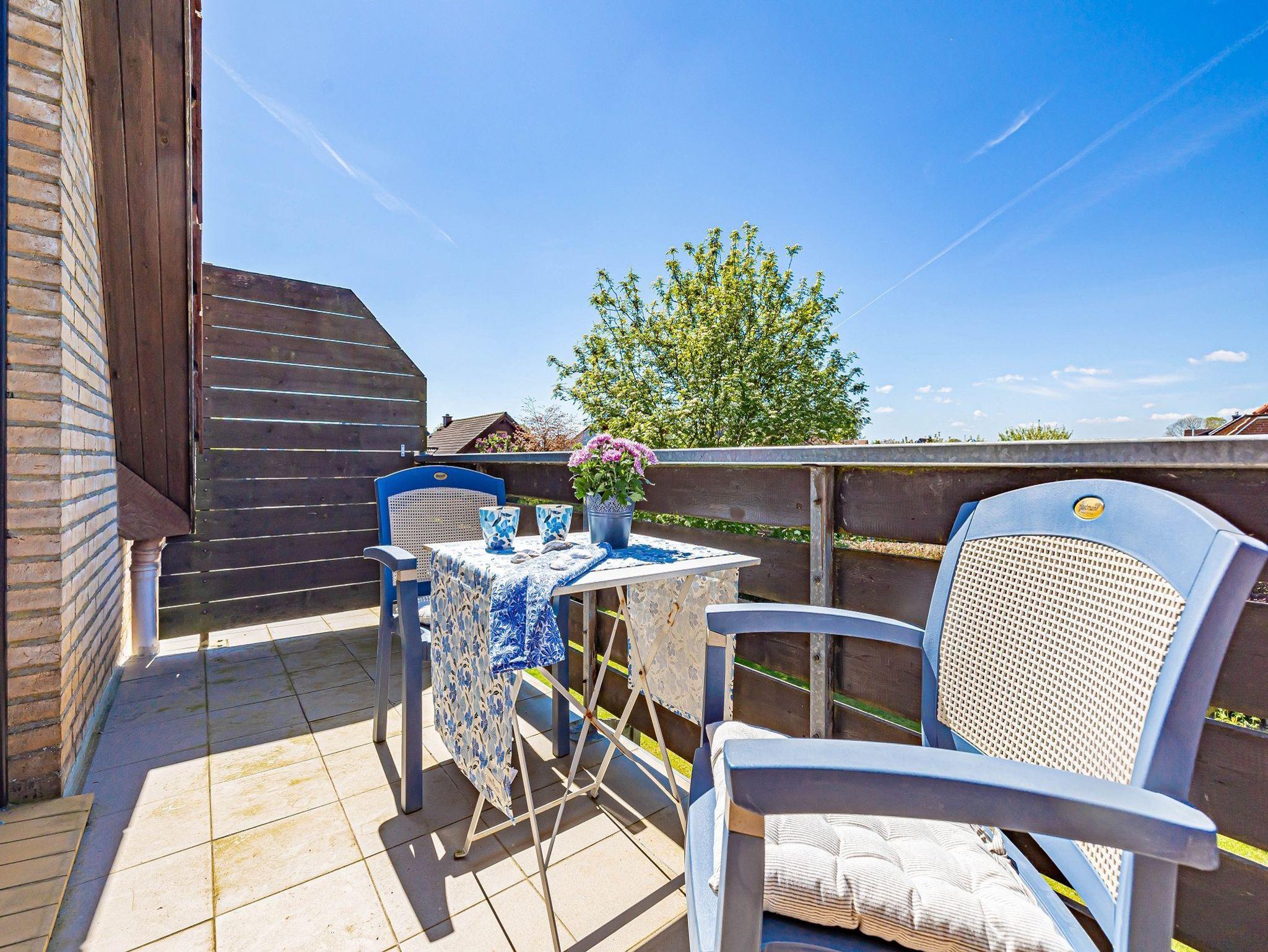 Gemütliche Maisonette-Ferienwohnung Schwalbe mit Balkon nahe kinderfreundlichem Naturstrand in Kronsgaard.